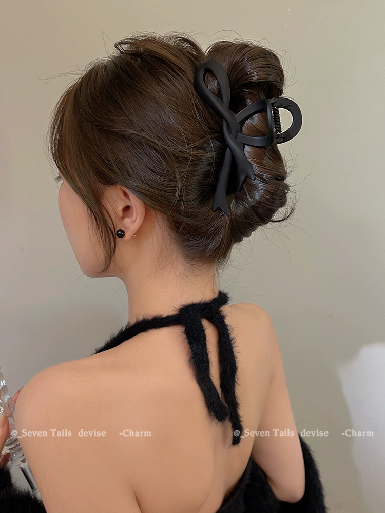 Autumn and winter frosted bow hair clip for women 2023 new hot style high-end gripping clip large Internet celebrity fashion shark clip
