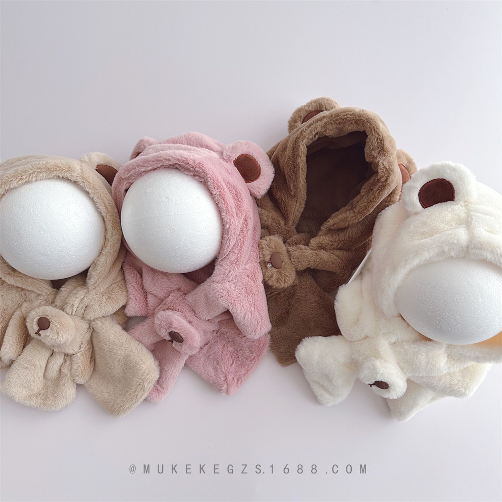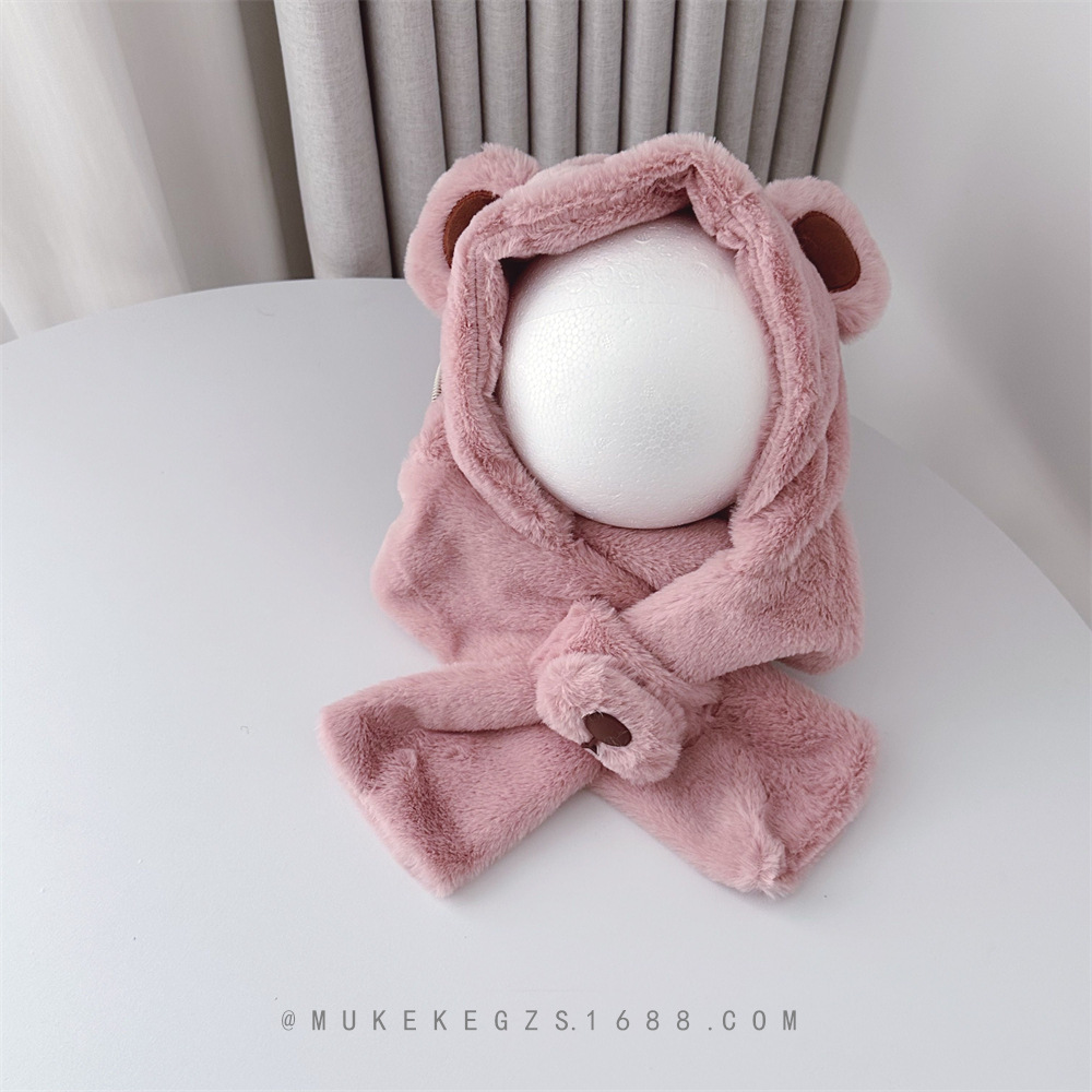 | nameOriginal | Autumn and winter furry hat scarf integrated hat South Korea baby cute bear warm earmuffs scarf suit |