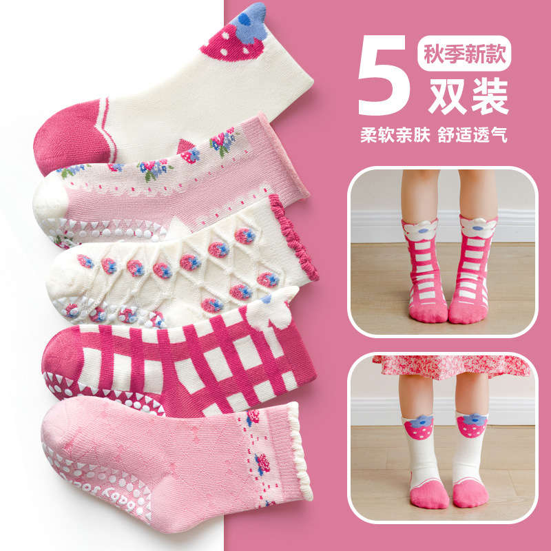 Autumn and Winter girls’ socks non-slip wholesale pastoral cartoon dispensing mid-calf socks autumn cotton socks baby socks middle and big children