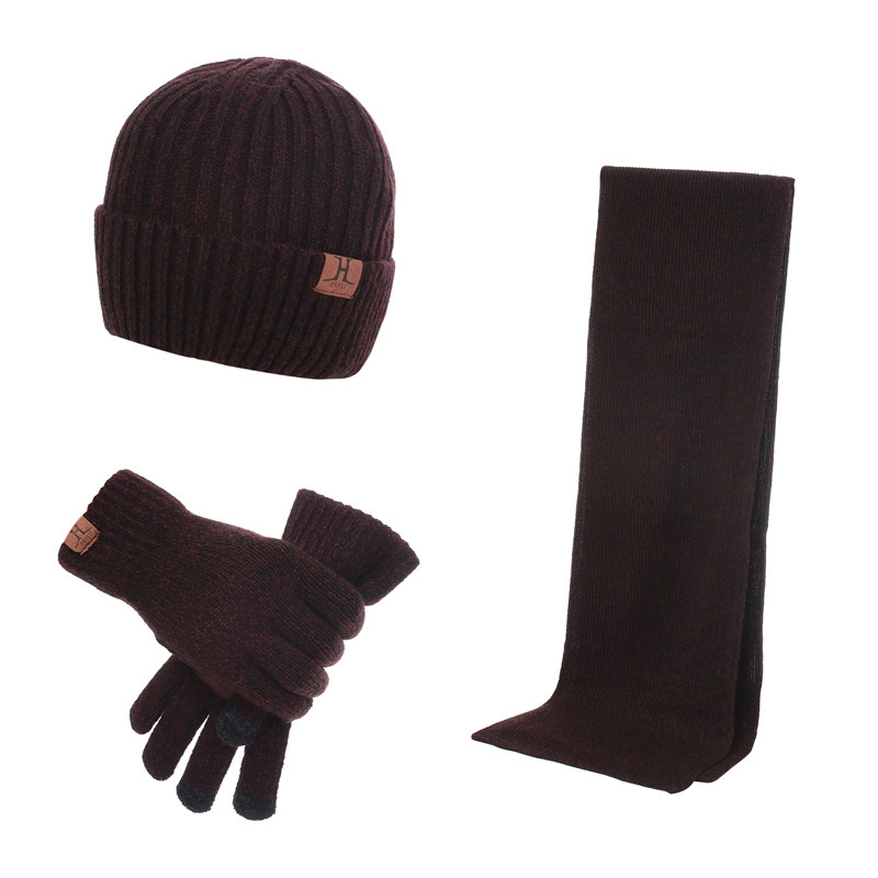 | nameOriginal | Autumn and winter H scarf hat gloves men and women thickened palm leather knitted wool warm three-piece set factory direct sales |