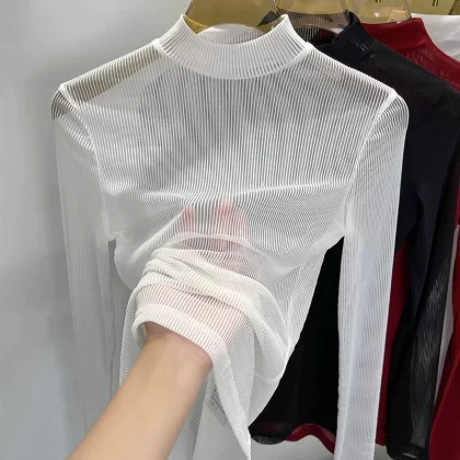 | nameOriginal | Autumn and winter half high collar lace fashion top mesh |