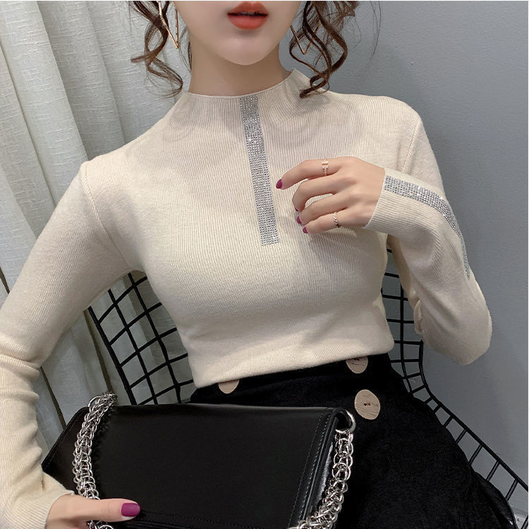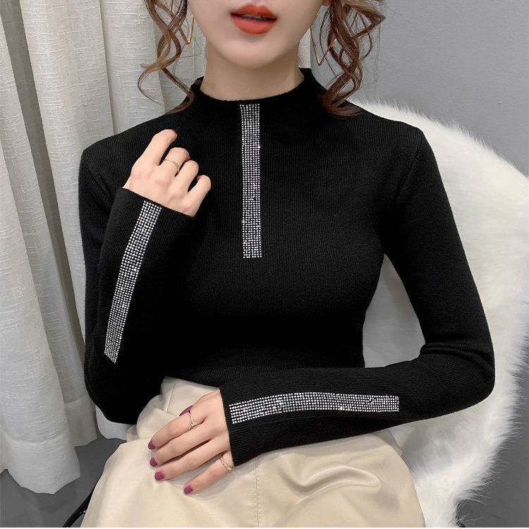 | nameOriginal | Autumn and Winter half turtleneck long sleeve bottoming shirt Women's slim slimming rhinestone fashion Western style knitwear sweater women's top |