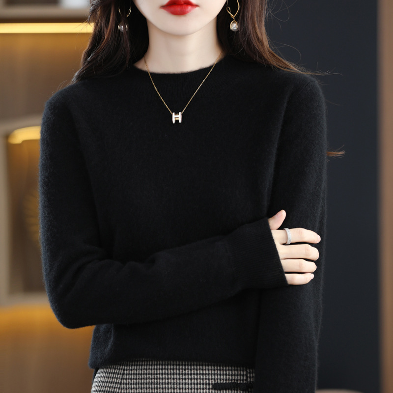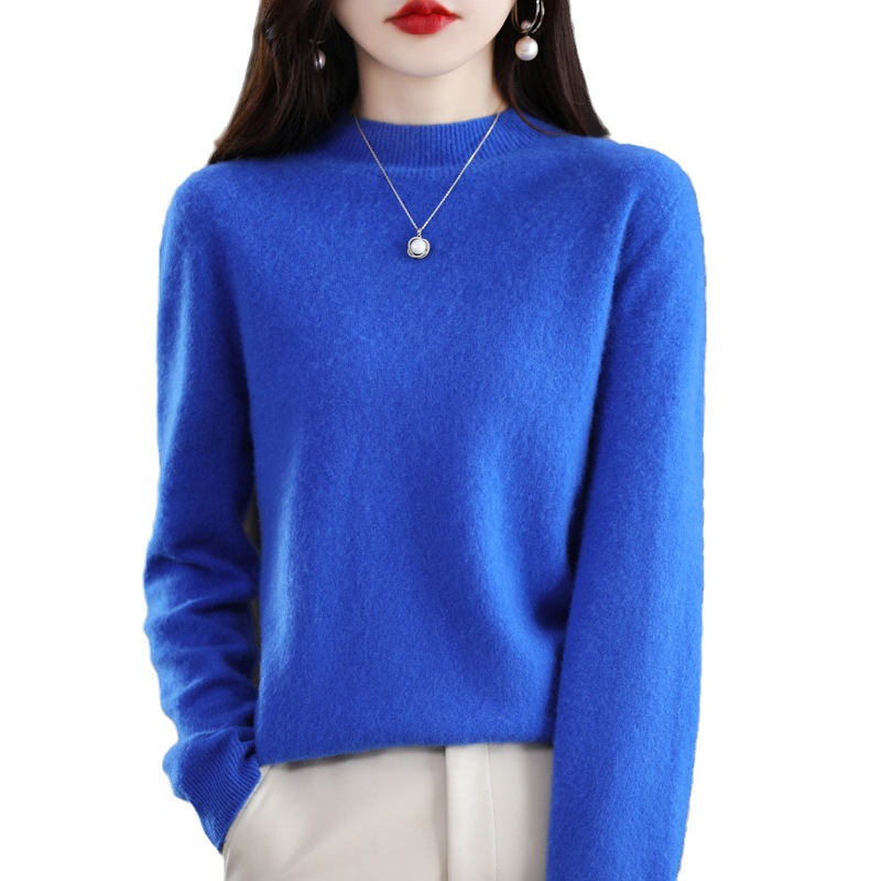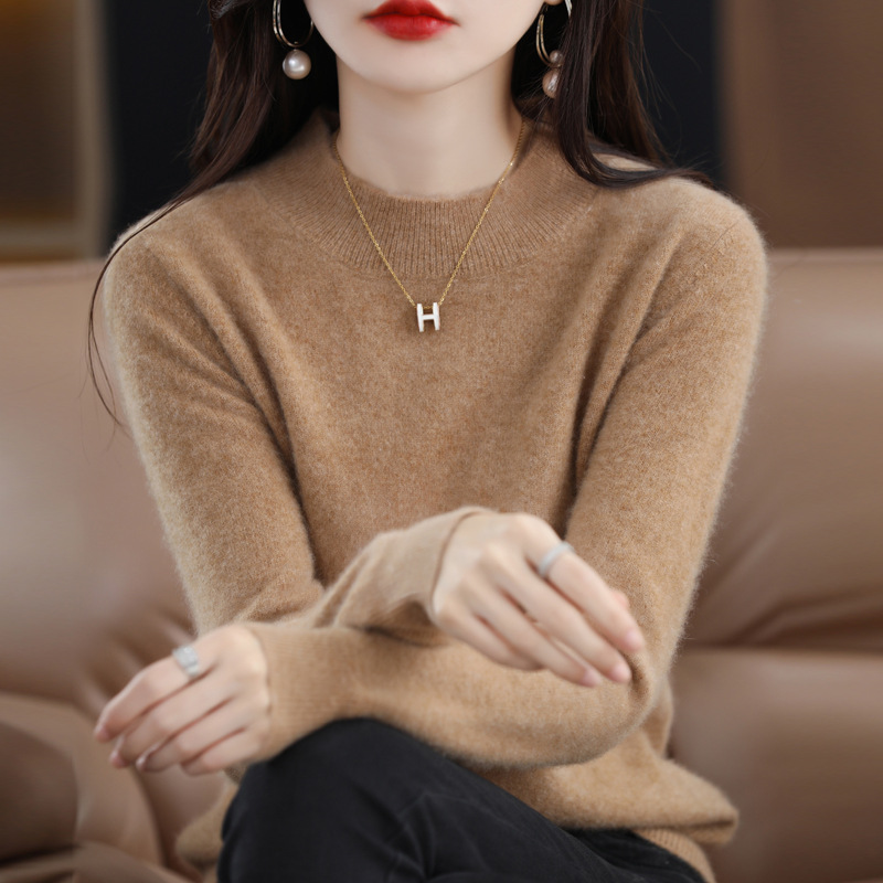 Autumn and Winter half turtleneck sweater women’s 100 pure wool knitted bottoming shirt loose long sleeve inner cashmere sweater women