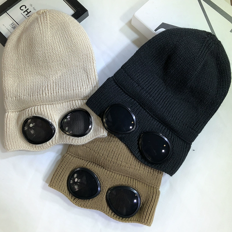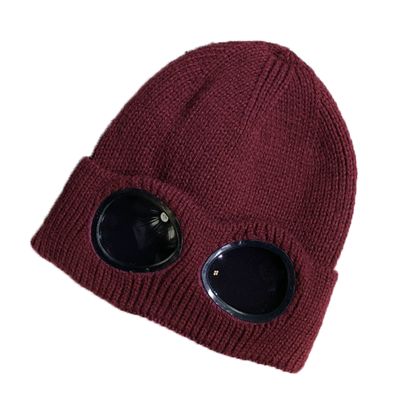 | nameOriginal | Autumn and winter hat women's glasses decorative woolen hat pilot toad mirror warm ski plus velvet thickened knitted hat for men |