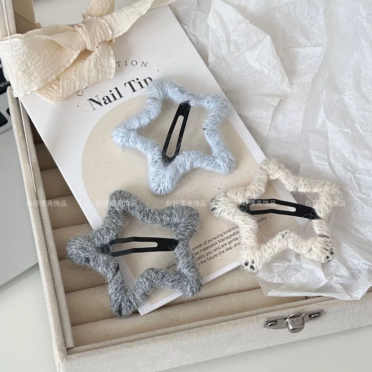 | nameOriginal | Autumn and winter high-end wool wrapped five-pointed star BB hair clip girls side clip broken hair bangs clip headband bangs clip |