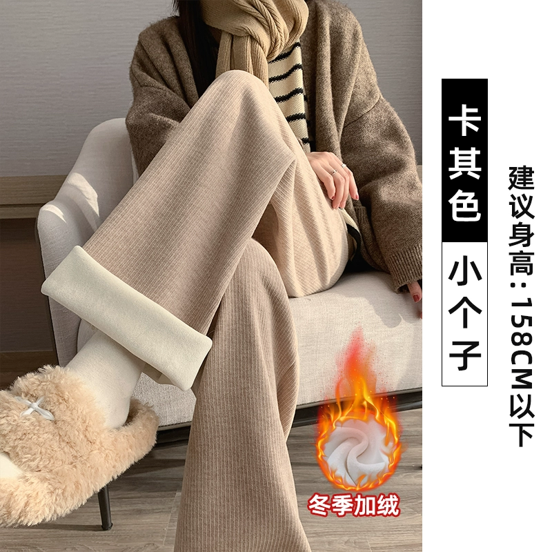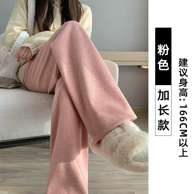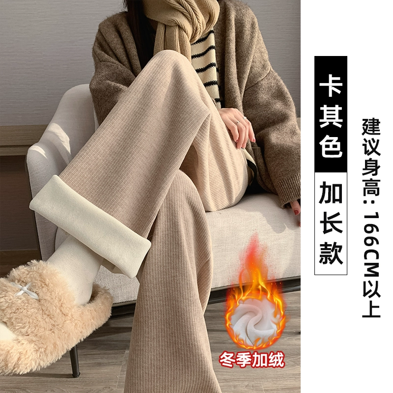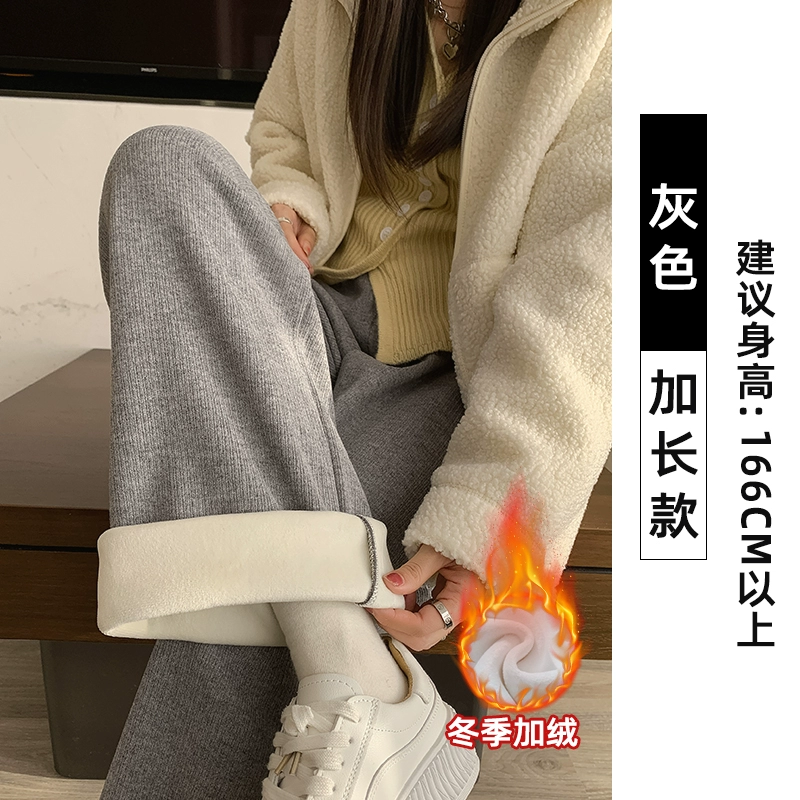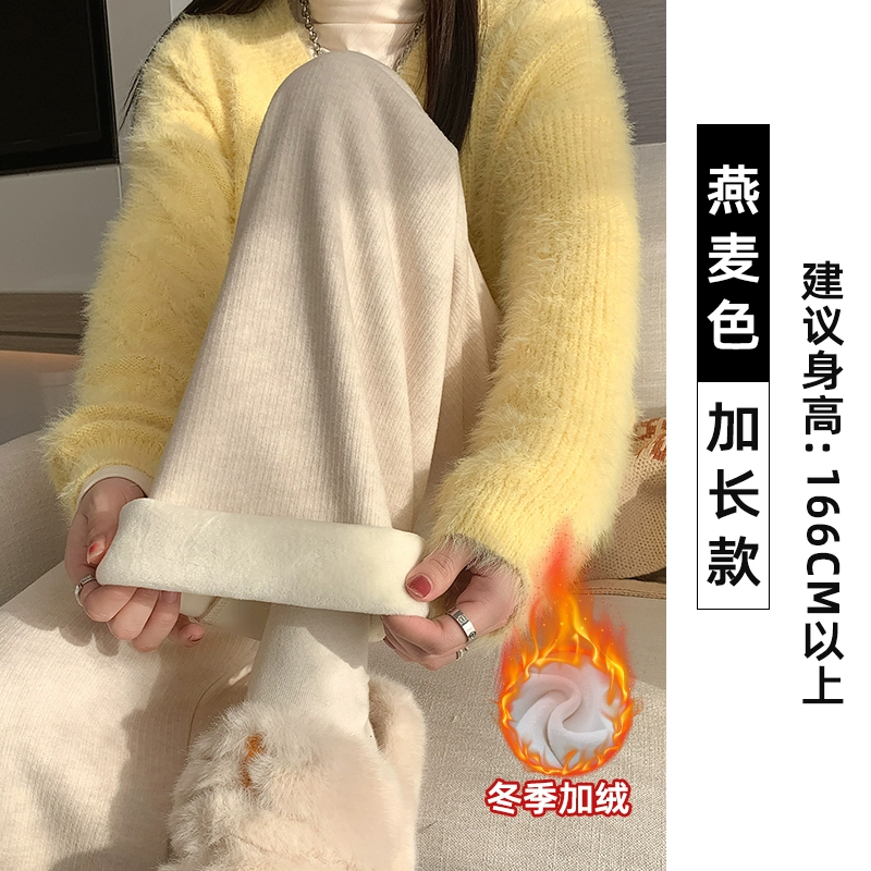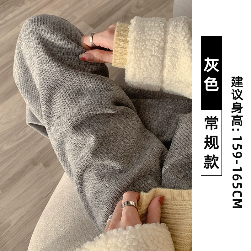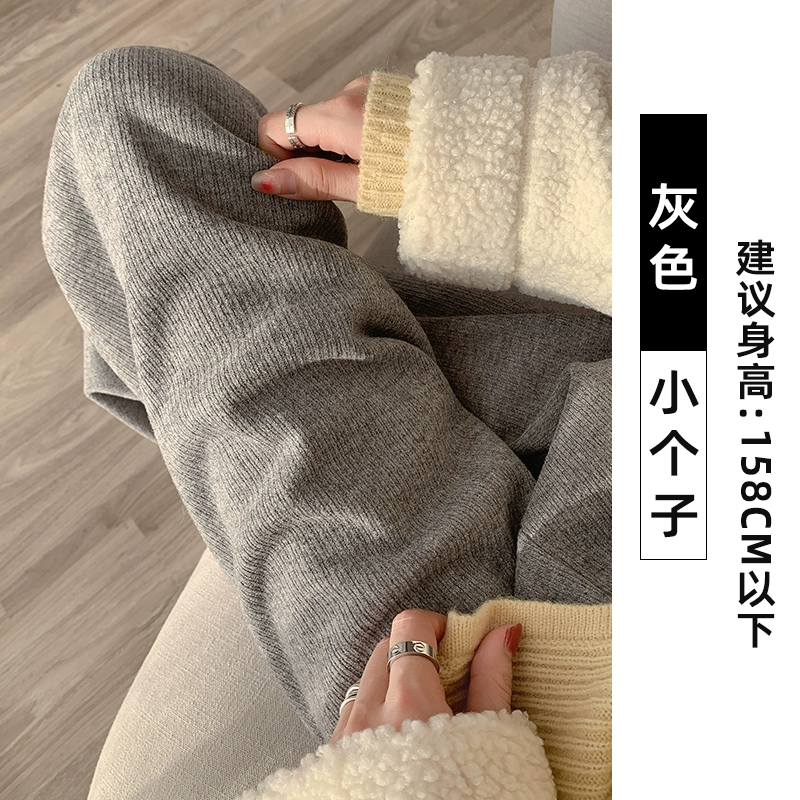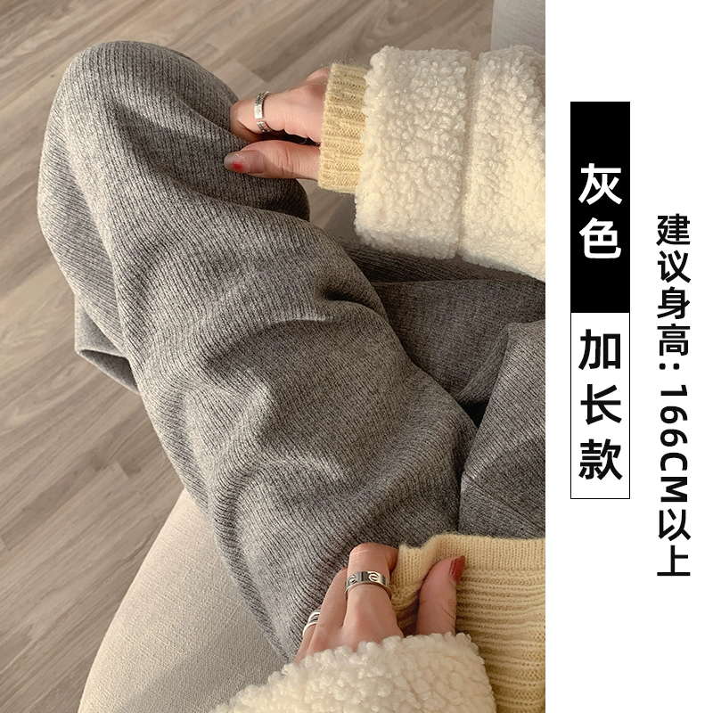 Autumn and winter high-waisted narrow casual fleece knitted pants