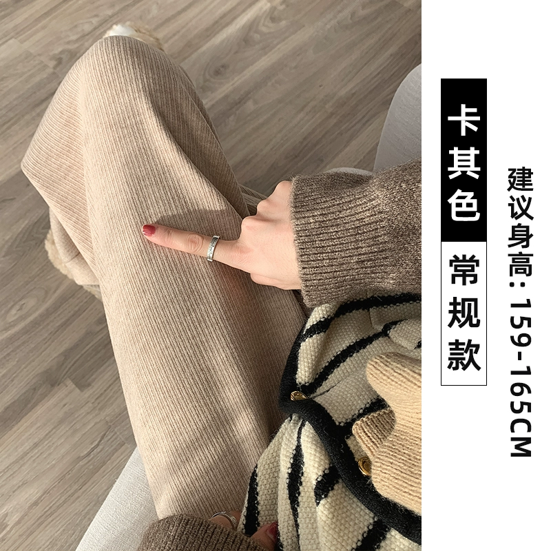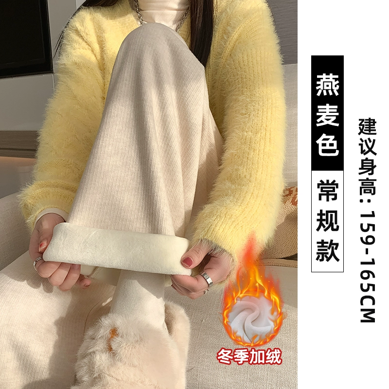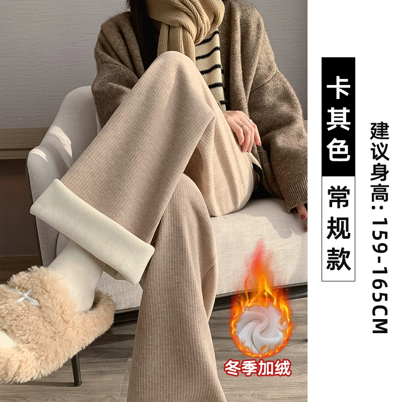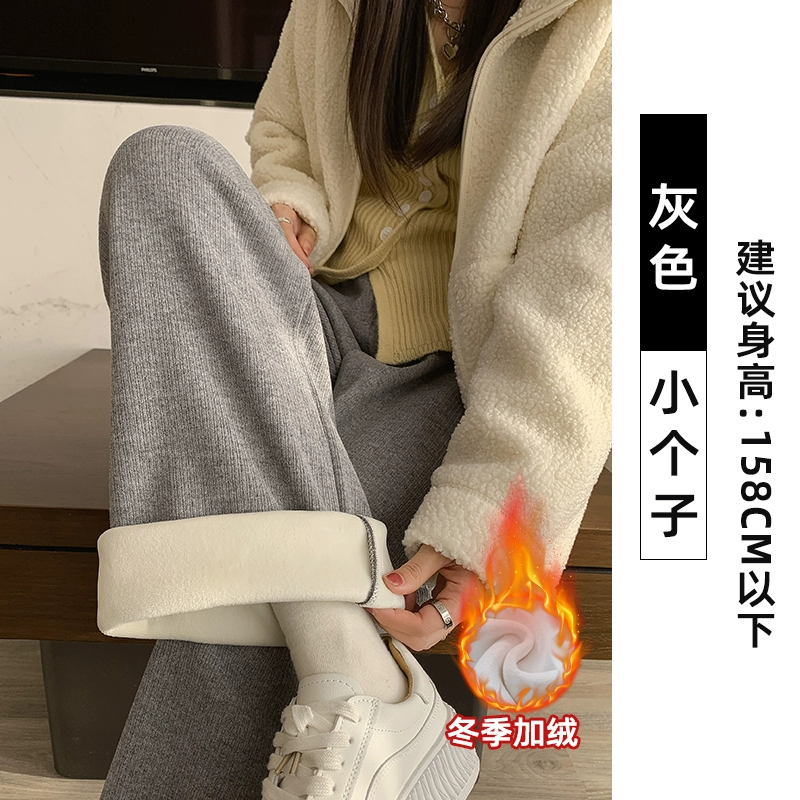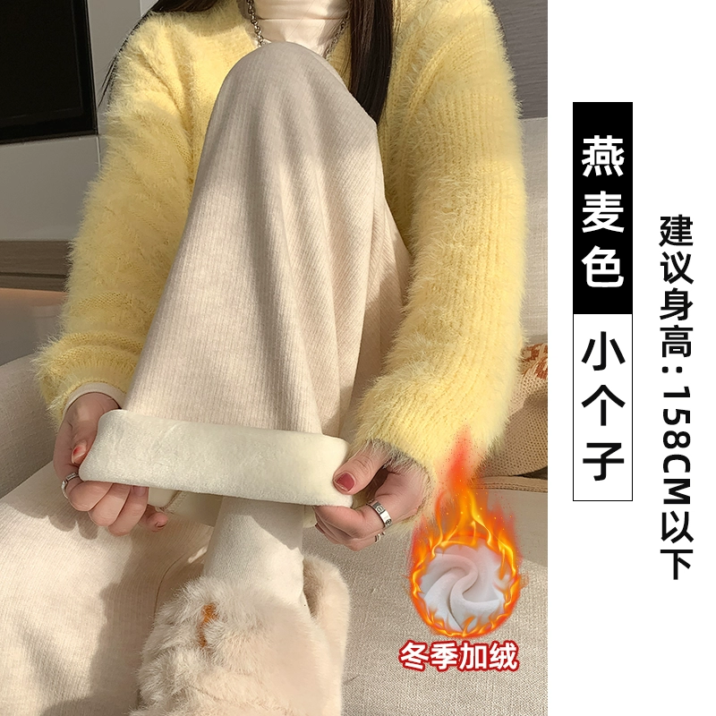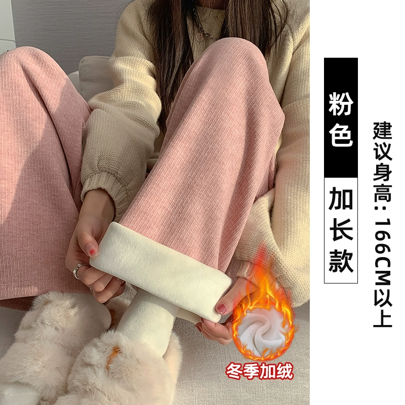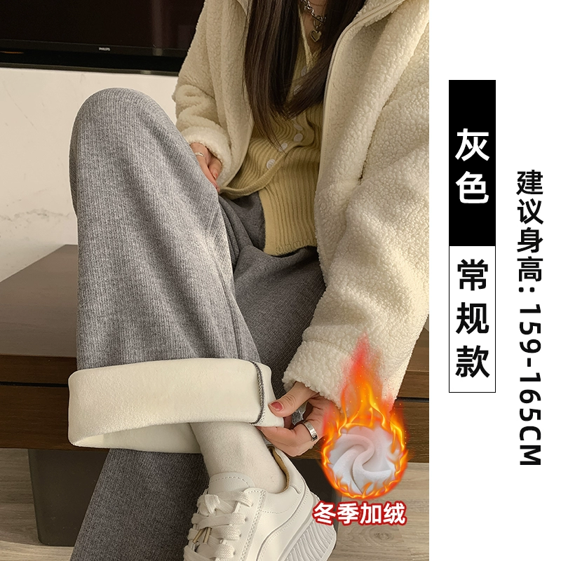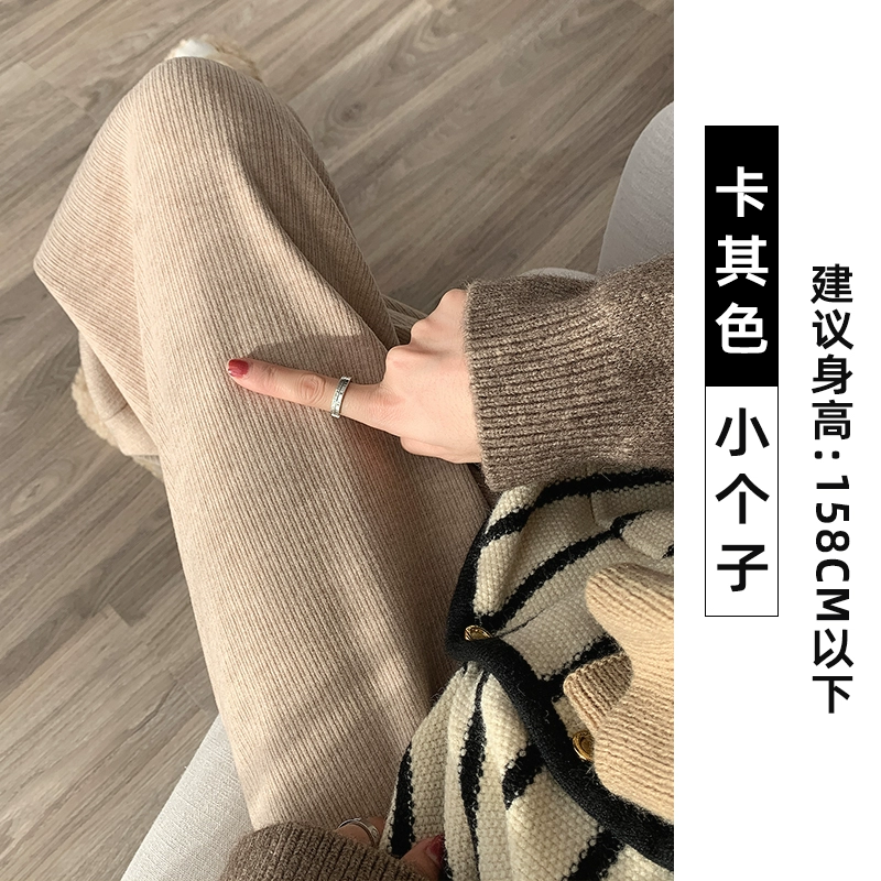 Autumn and winter high-waisted narrow casual fleece knitted pants