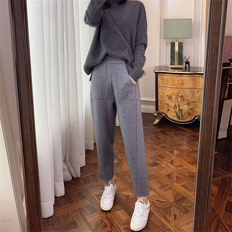 | nameOriginal | Autumn and Winter Knitted Wide-leg Pants Women's High Waist Slimming Casual Harem Pants Loose All-match Dipped Cropped Straight Pipe Pants |