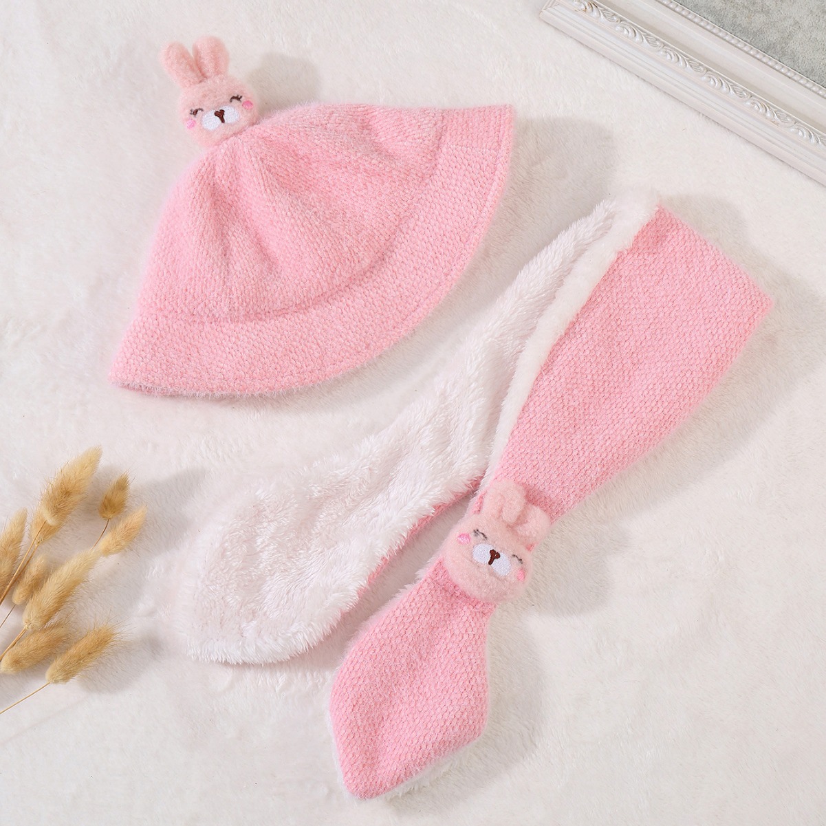 | nameOriginal | Autumn and Winter Korean style cute rabbit sun hat plush hat scarf windproof fisherman hat warm thickened fleece-lined two-piece set |