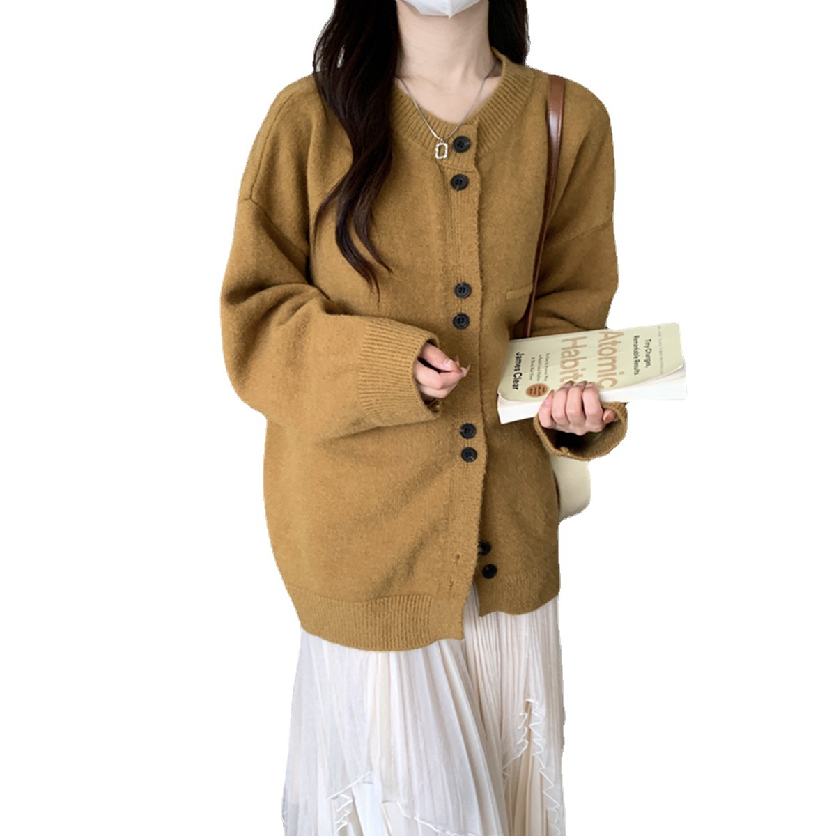 | nameOriginal | Autumn and Winter Korean-style Loose Two-button Crewneck Knitted Cardigan Sweater Women's Solid Color Lazy Style Coat Women's Top |