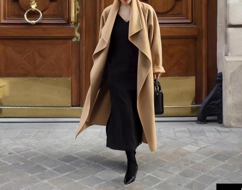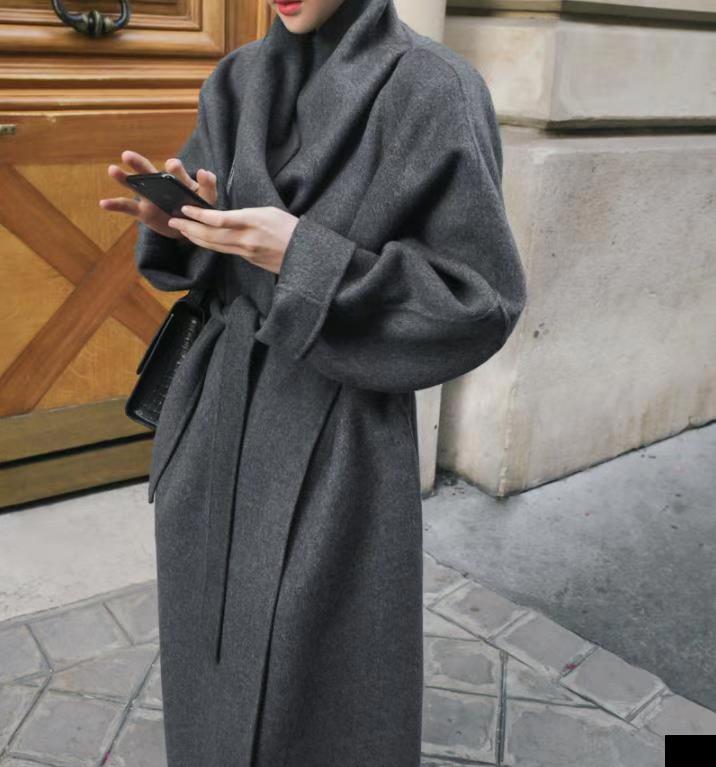 Autumn and winter large lapel long aura European and American Hepburn double-sided cashmere coat woolen coat women’s 2023 Woolen