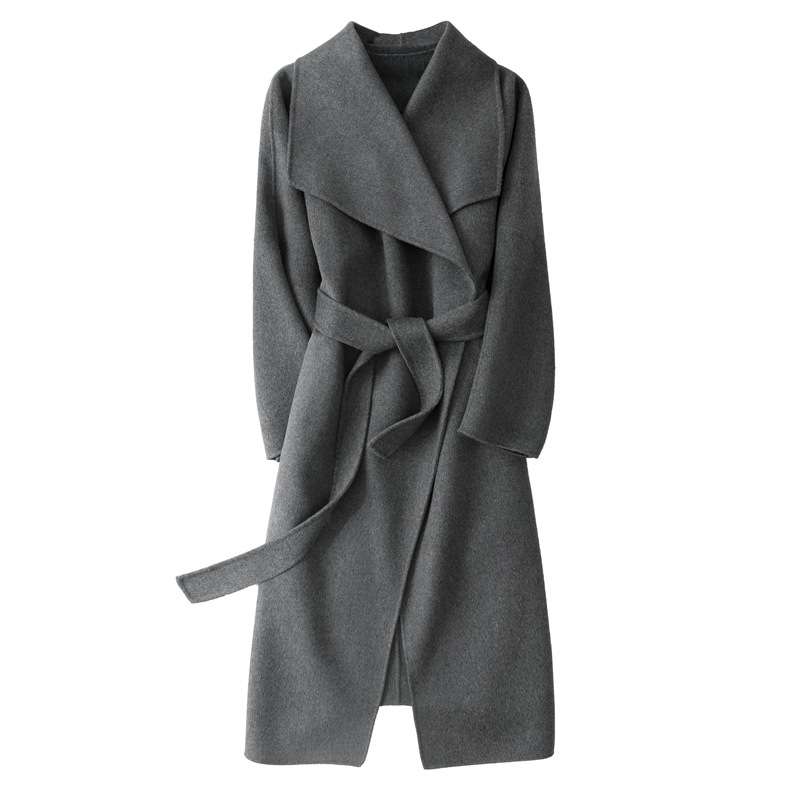 Autumn and winter large lapel long aura European and American Hepburn double-sided cashmere coat woolen coat women's 2023 Woolen