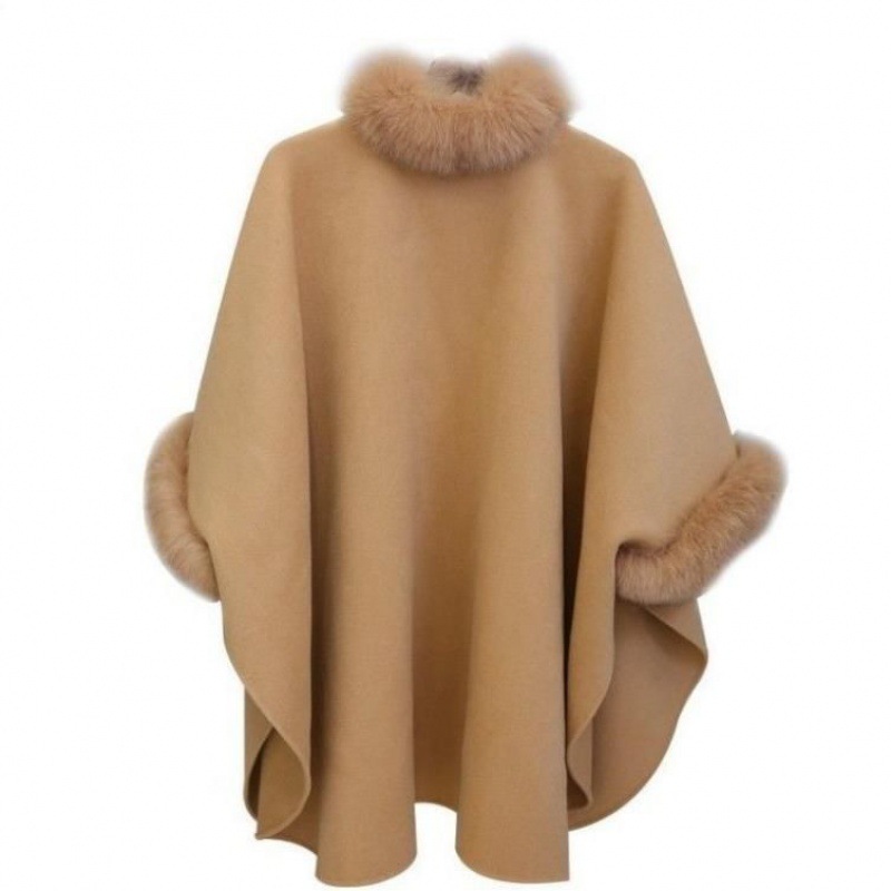 Autumn and Winter large rabbit fur collar mid-length woolen coat elegant Cape shawl Hepburn style woolen plus size coat for women