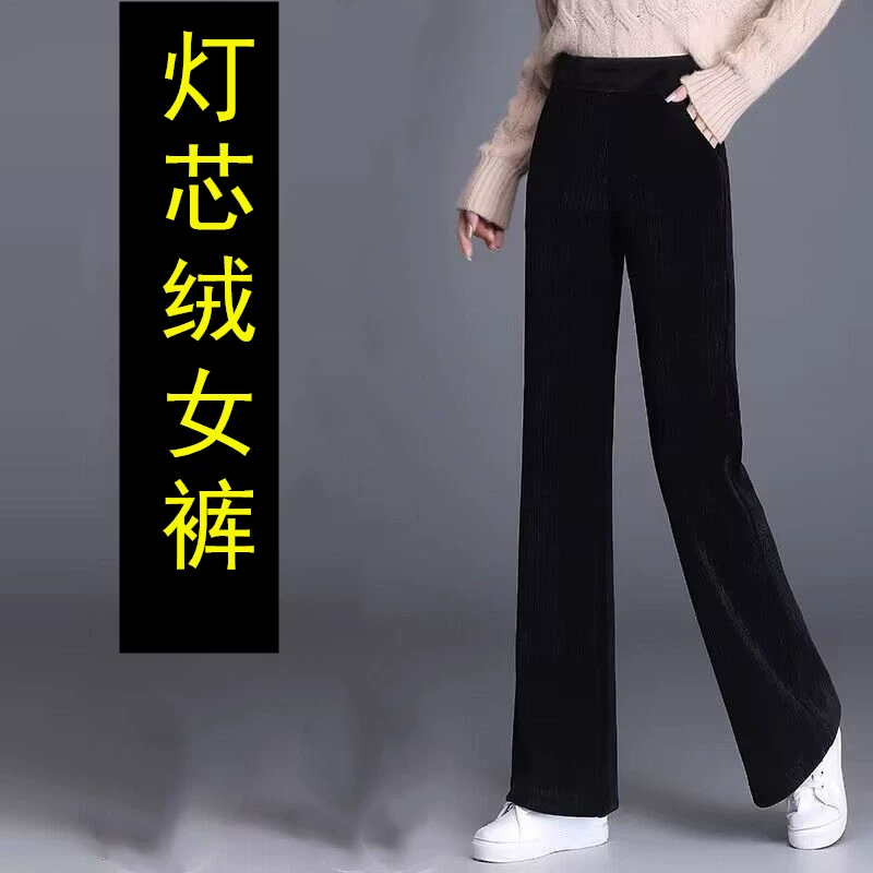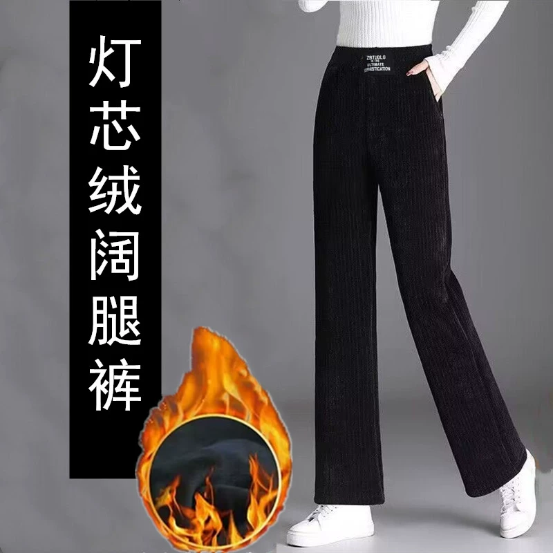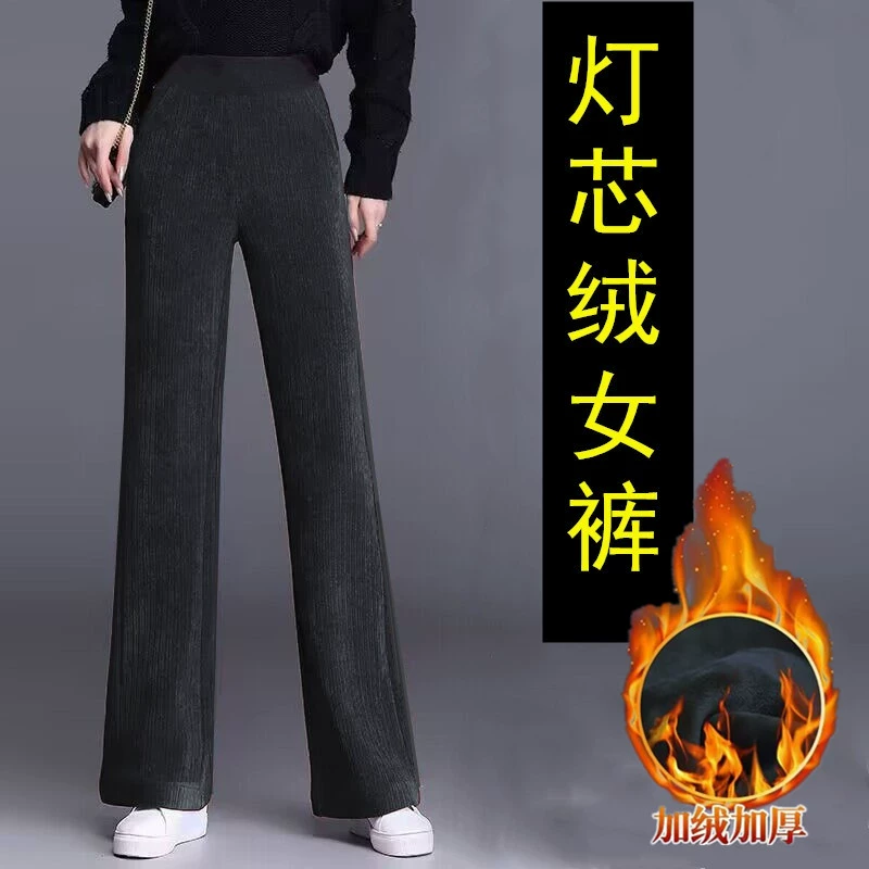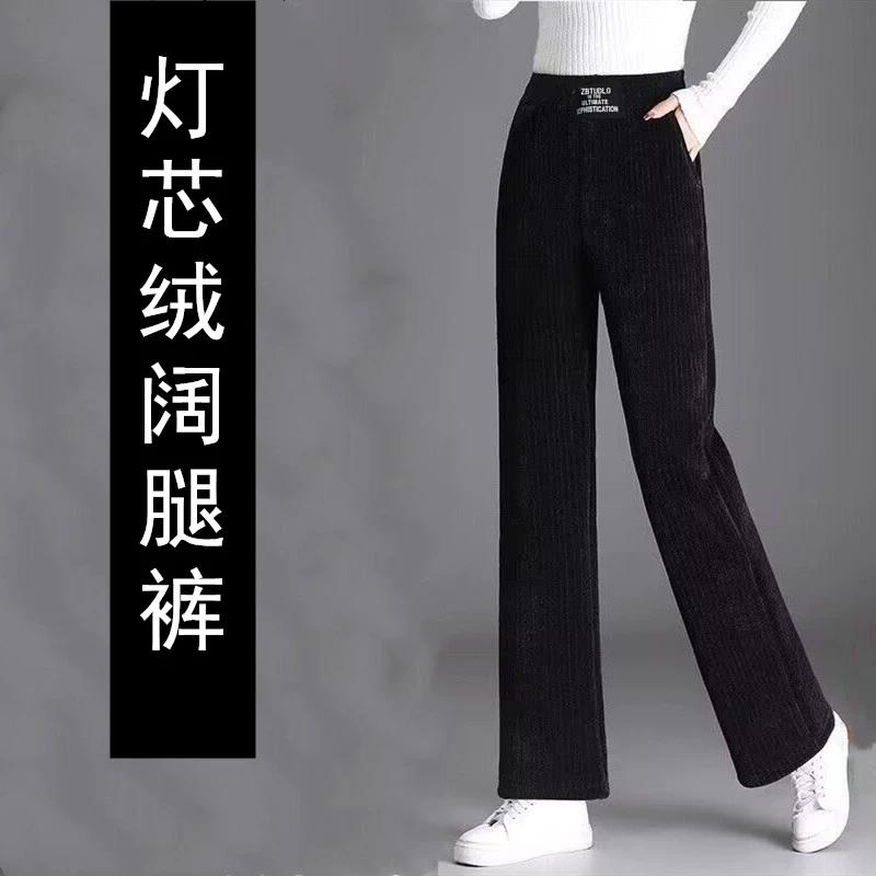 Autumn and winter large size thickened velvet corduroy wide-leg pants for women 2023 new women's loose slimming straight casual pants