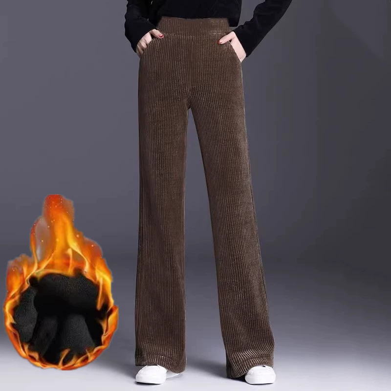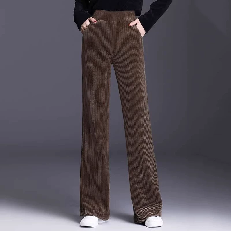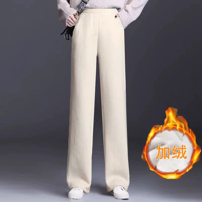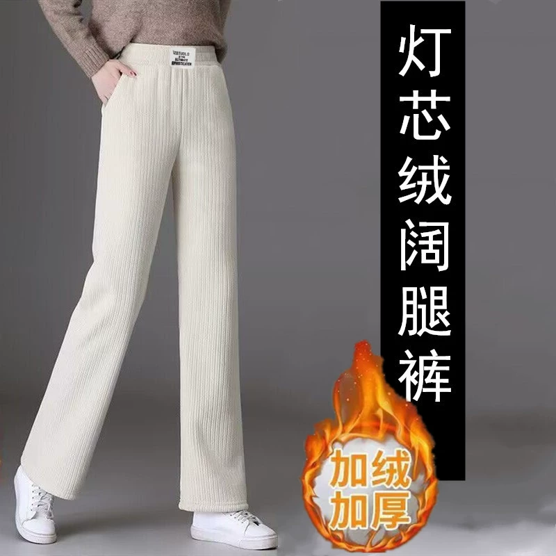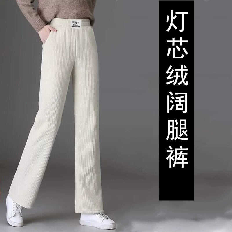Autumn and winter large size thickened velvet corduroy wide-leg pants for women 2023 new women’s loose slimming straight casual pants