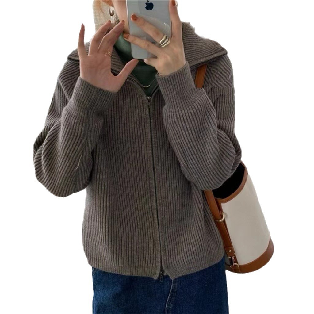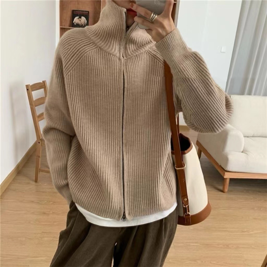 | nameOriginal | Autumn and Winter Lazy Style High Neck Thickened Knitted Cardigan Korean-style Instagram-style Zipper Design Niche Lapel Sweater for Women |