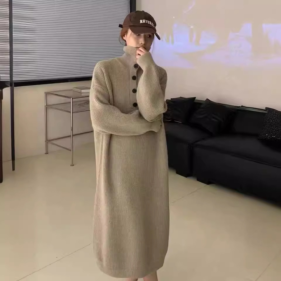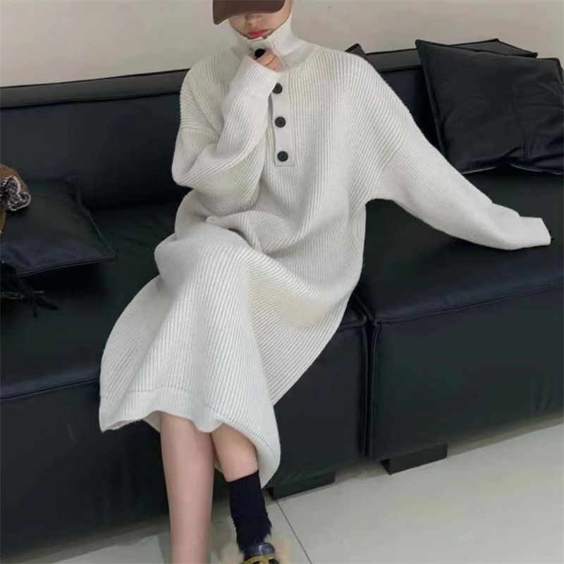 | nameOriginal | Autumn and Winter lazy style over-the-knee sweater dress women's long meat covering loose tall solid color sweater long skirt women |