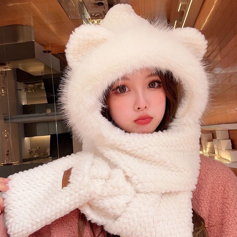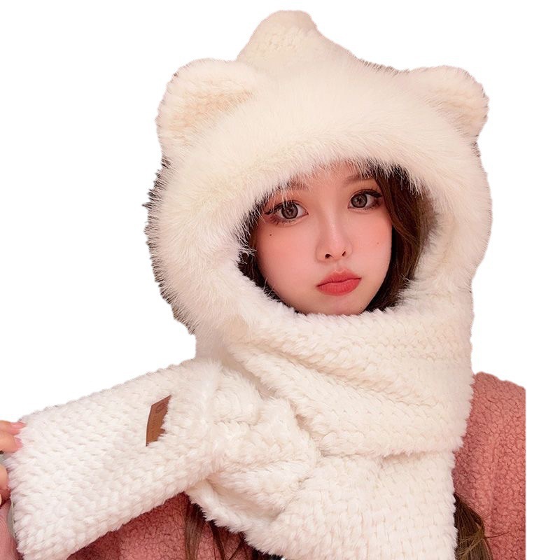 | nameOriginal | Autumn and Winter Lei Feng hat cycling bear ears plush hat scarf integrated women's warm all-match mask ear protection |