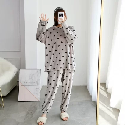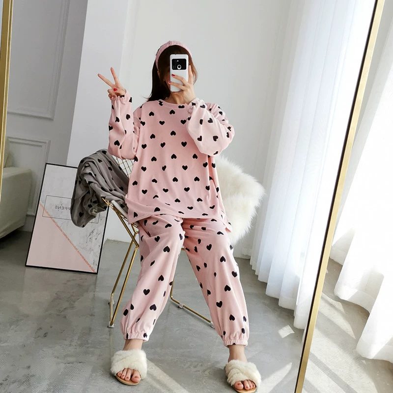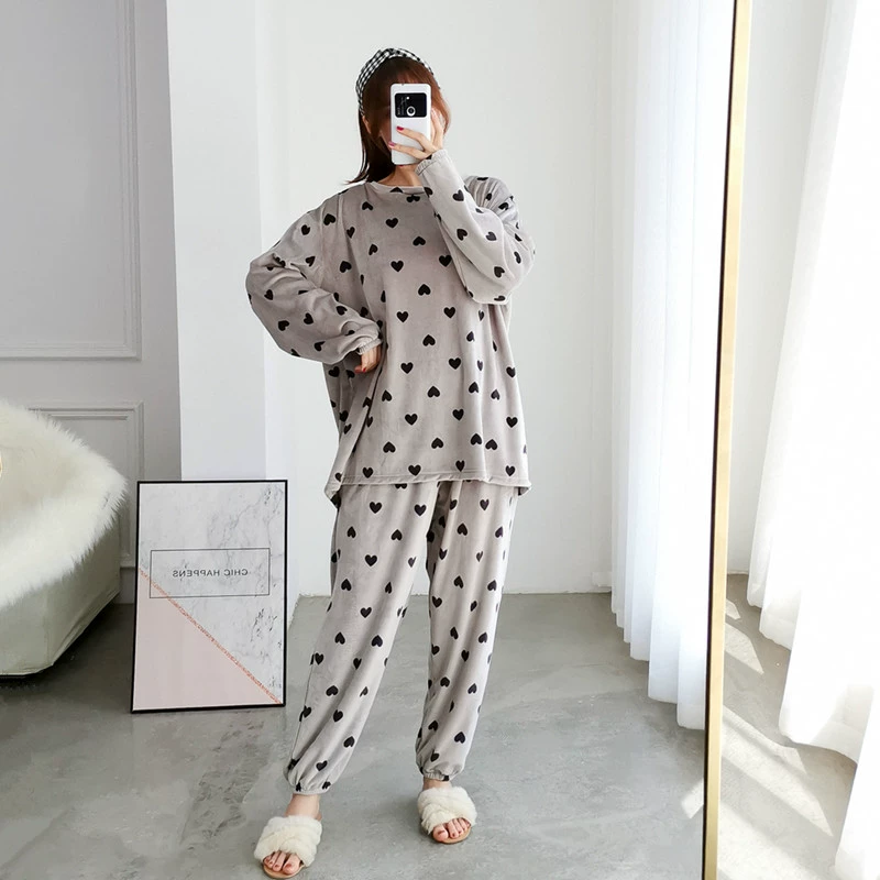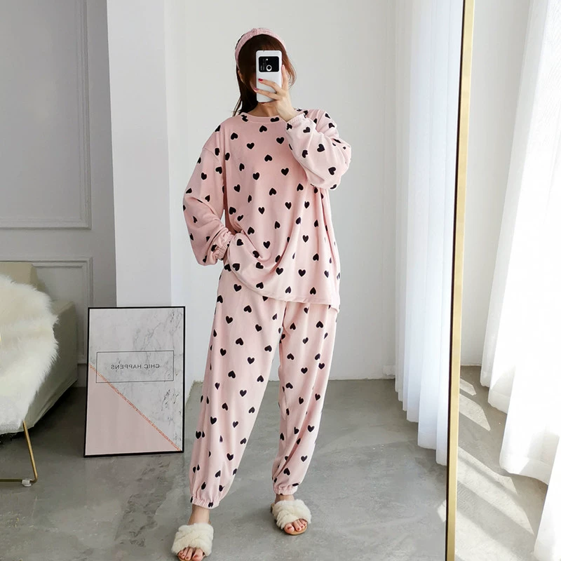 | nameOriginal | Autumn and winter love coral velvet pajamas women's two-piece set plus size cute pregnant women fat mm 200 pounds plus velvet home clothes |