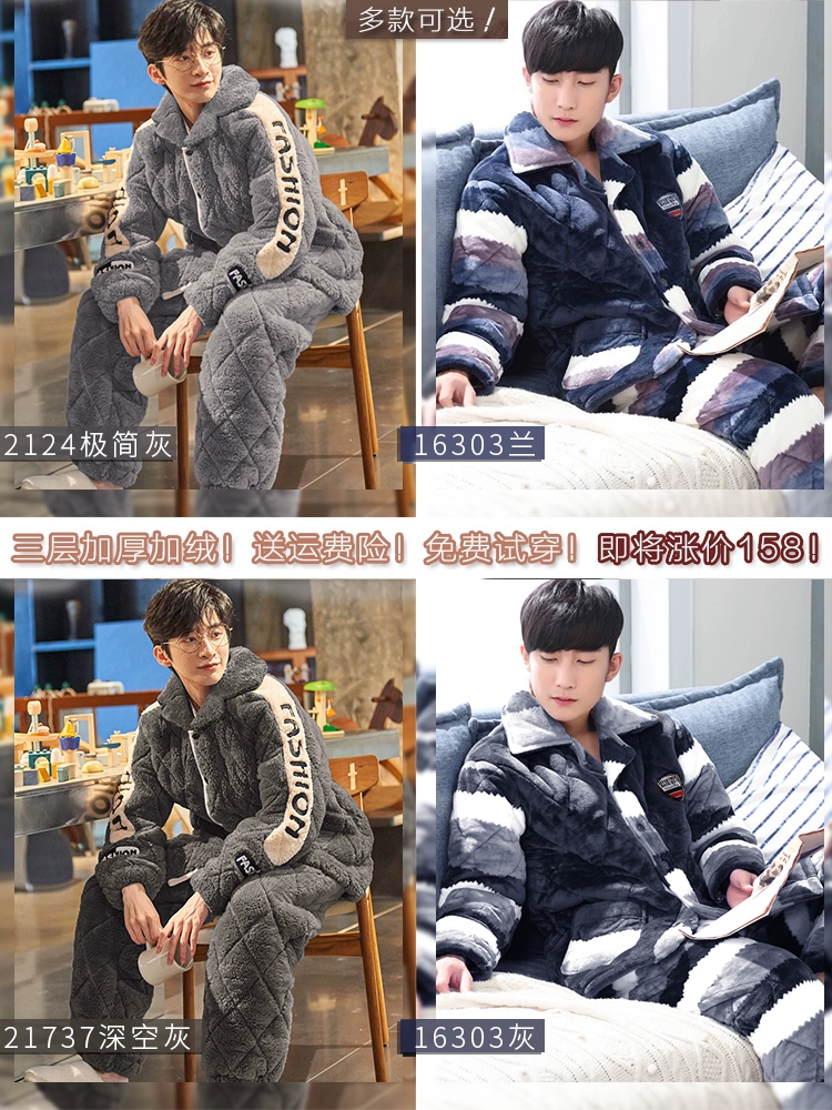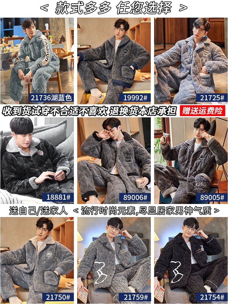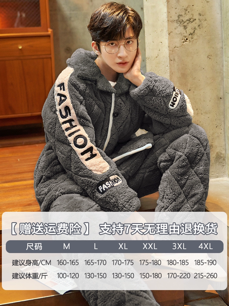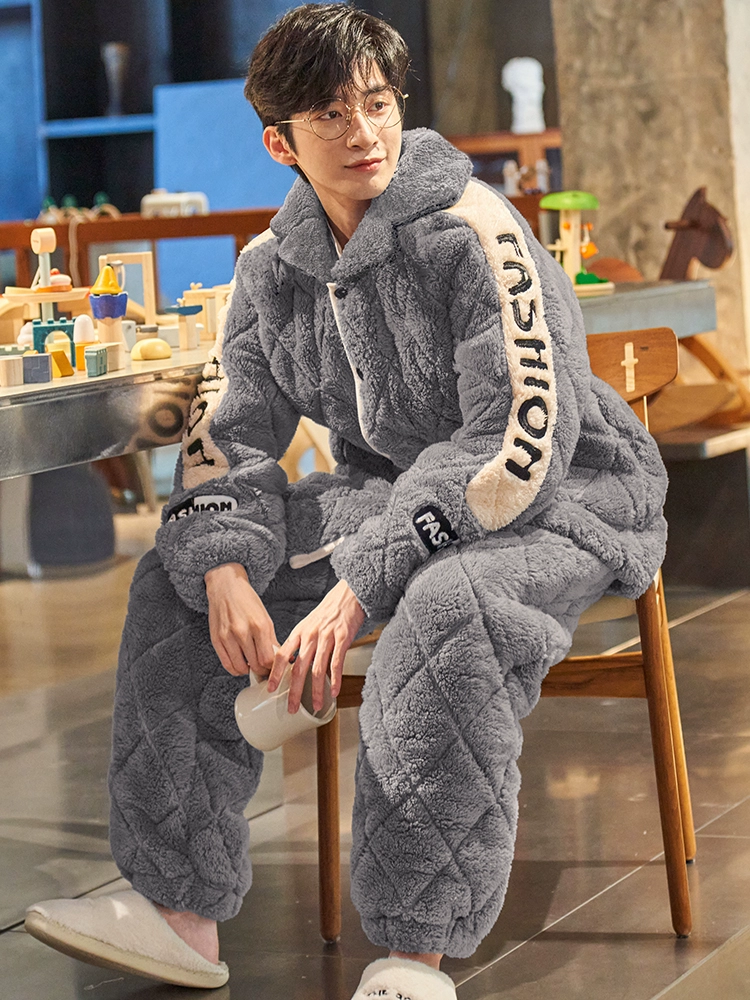 | nameOriginal | Autumn and winter men's pajamas coral velvet winter thickened plus velvet warm flannel three-layer quilted home clothes set |