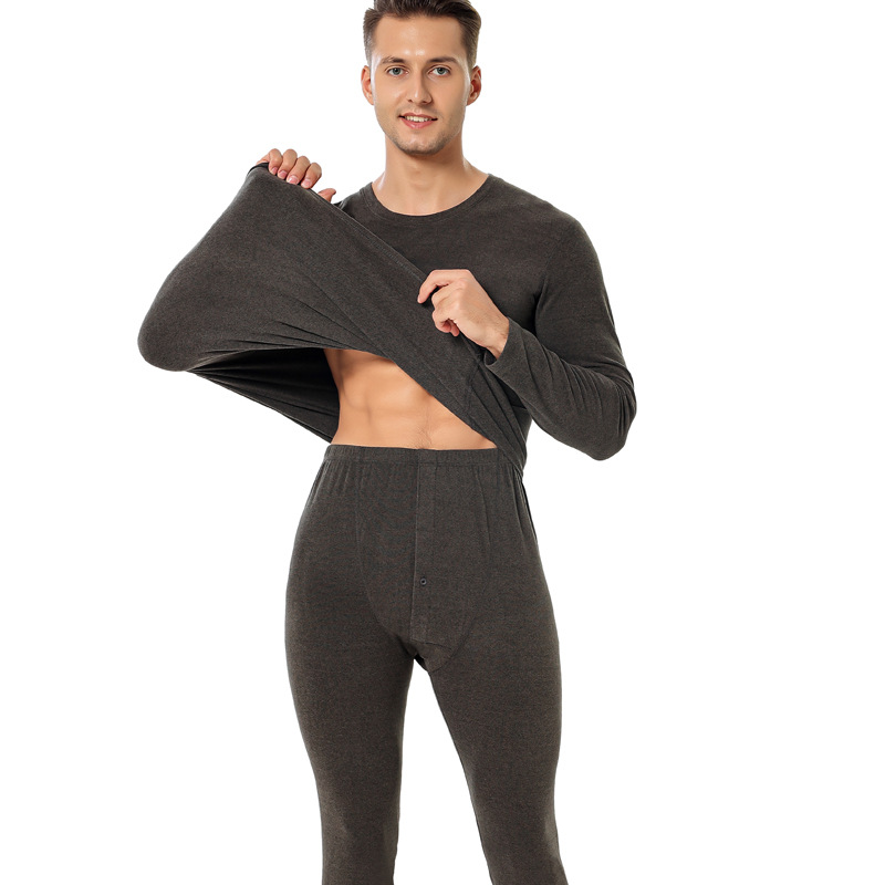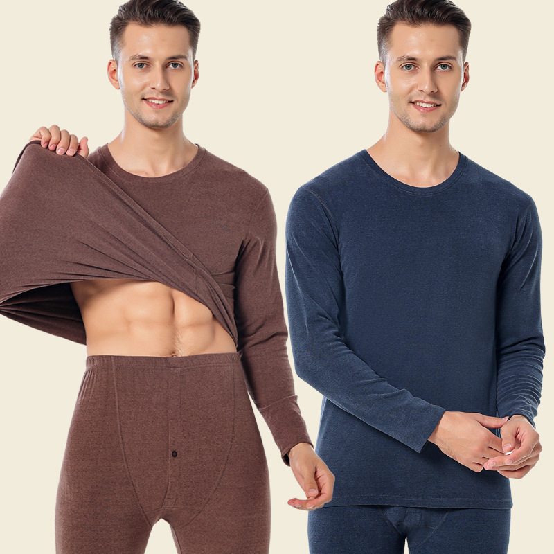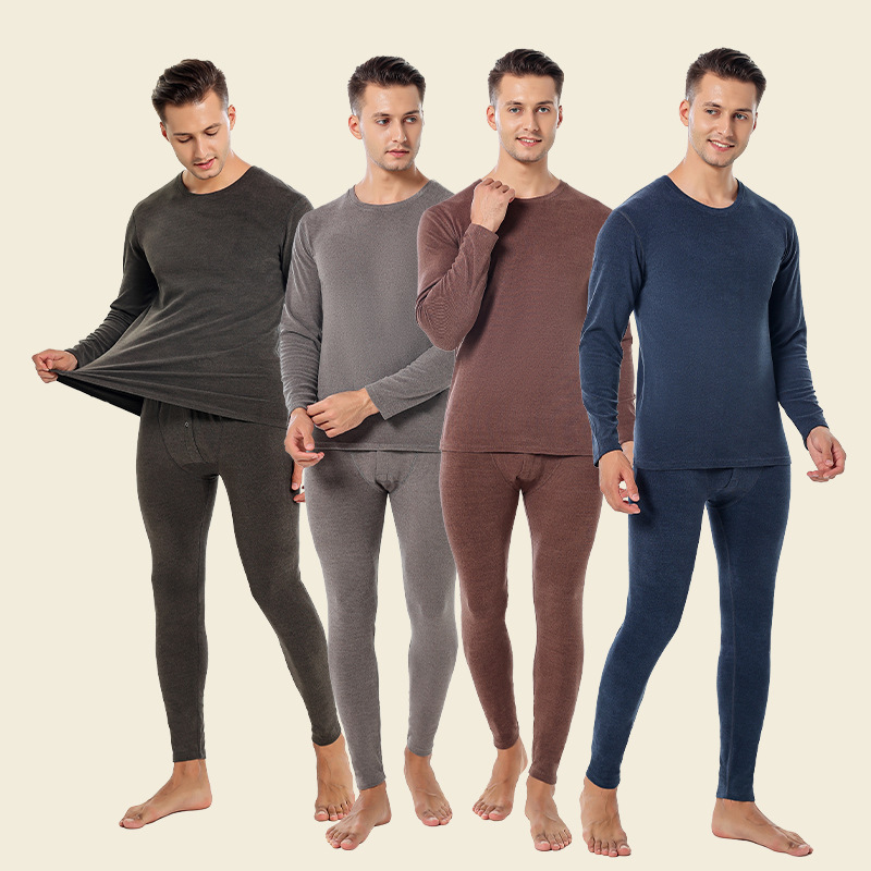Autumn and winter men’s warm suit fleece-lined double-sided Zhudi brushed round neck long johns bottoming underwear