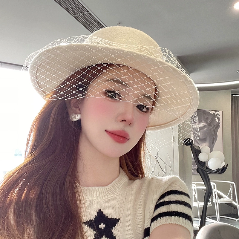 Autumn and winter net gauze wool hat French Hepburn Hypening top hats female retro fashion British Pinghe rename hat shows a small face