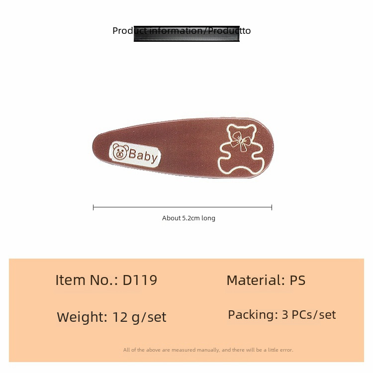 | nameOriginal | Autumn and winter milk tea color children's hair clip Korean version of 3 sets side clip cute cartoon student side clip bangs clip D119 |