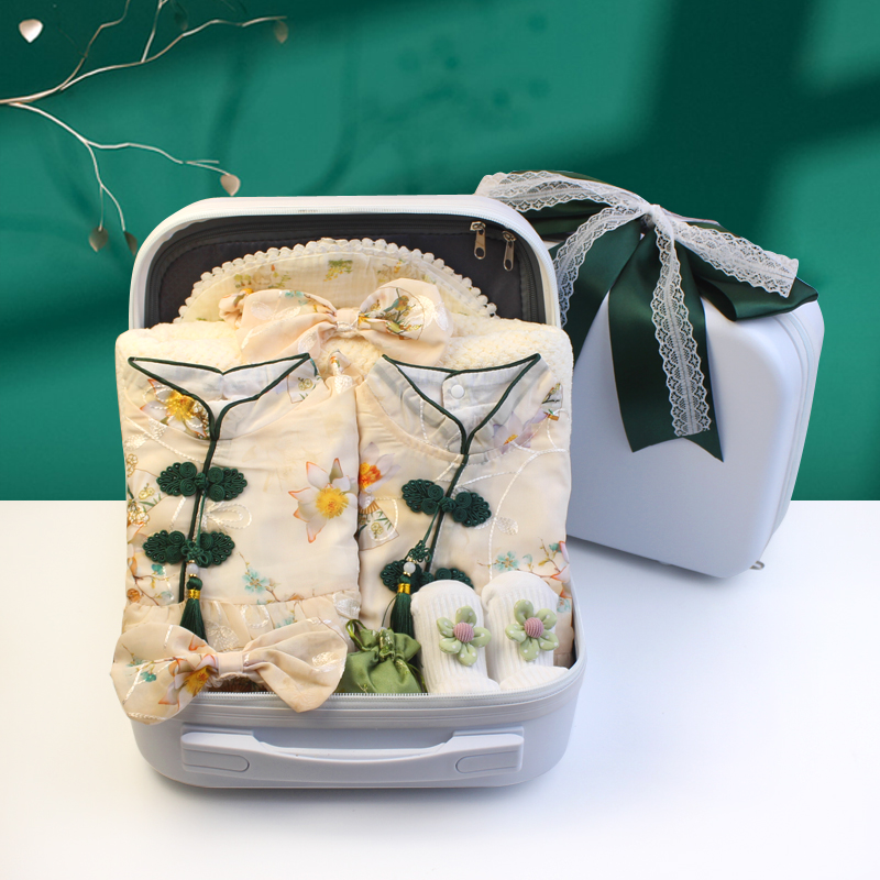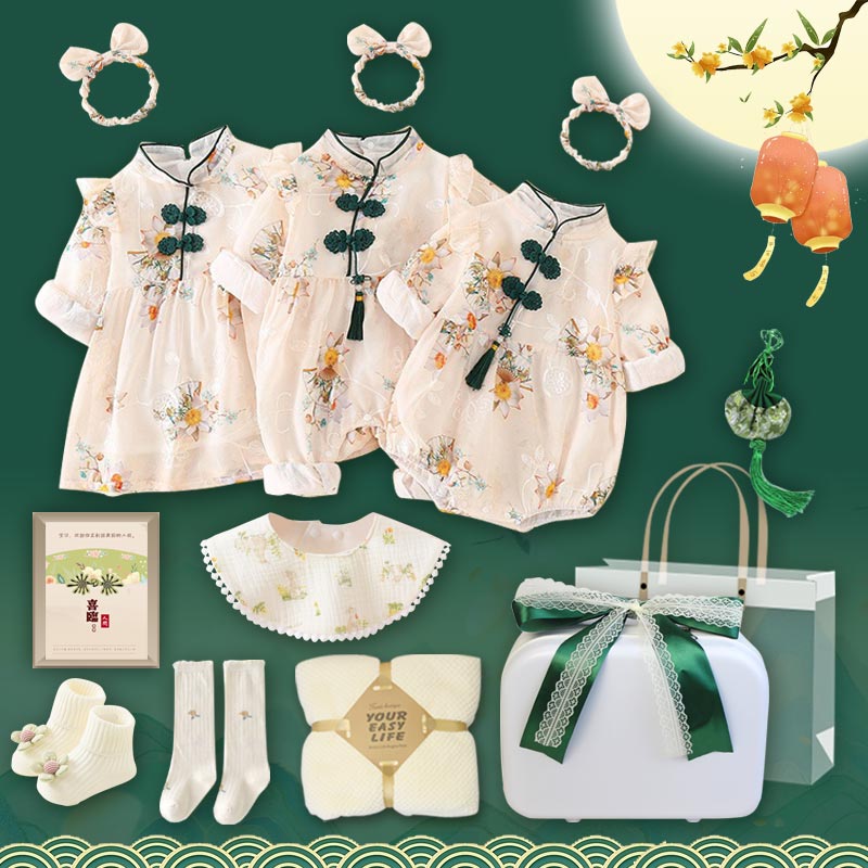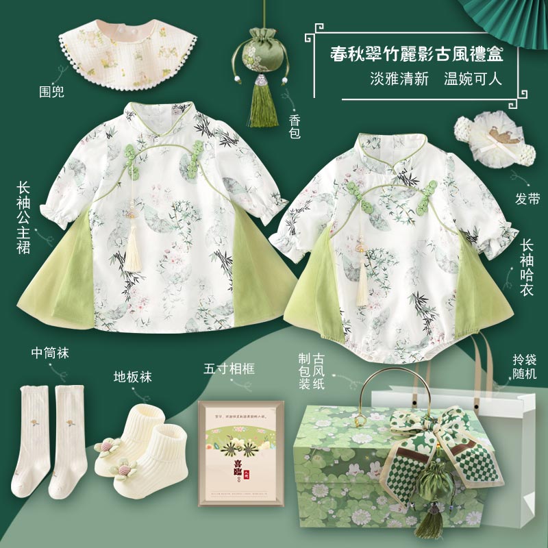 | nameOriginal | Autumn and Winter National style cheongsam newborn children meeting gift box baby girl fresh green series newborn baby Full Moon gift |