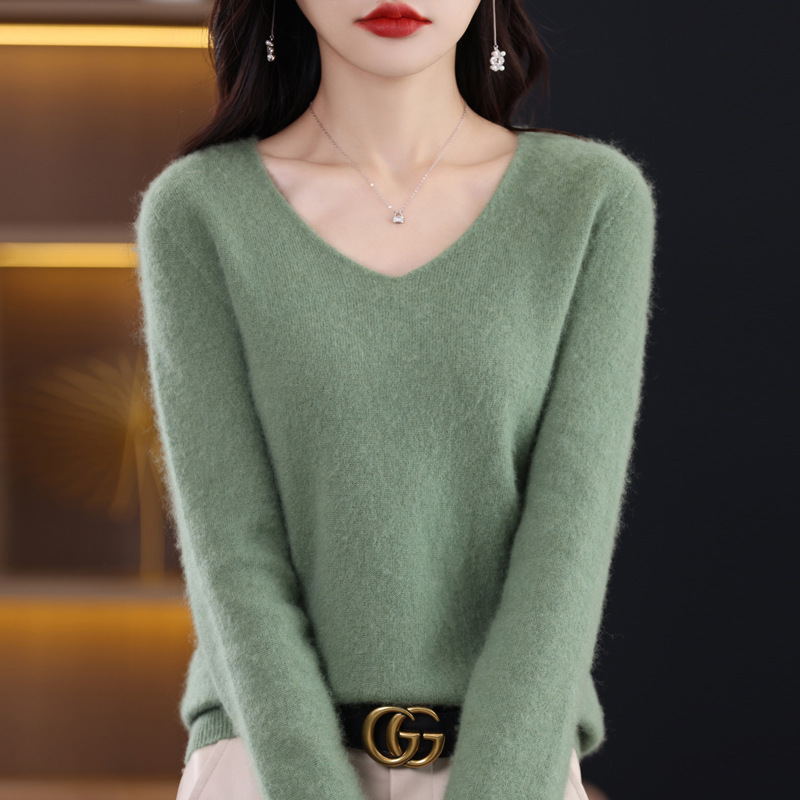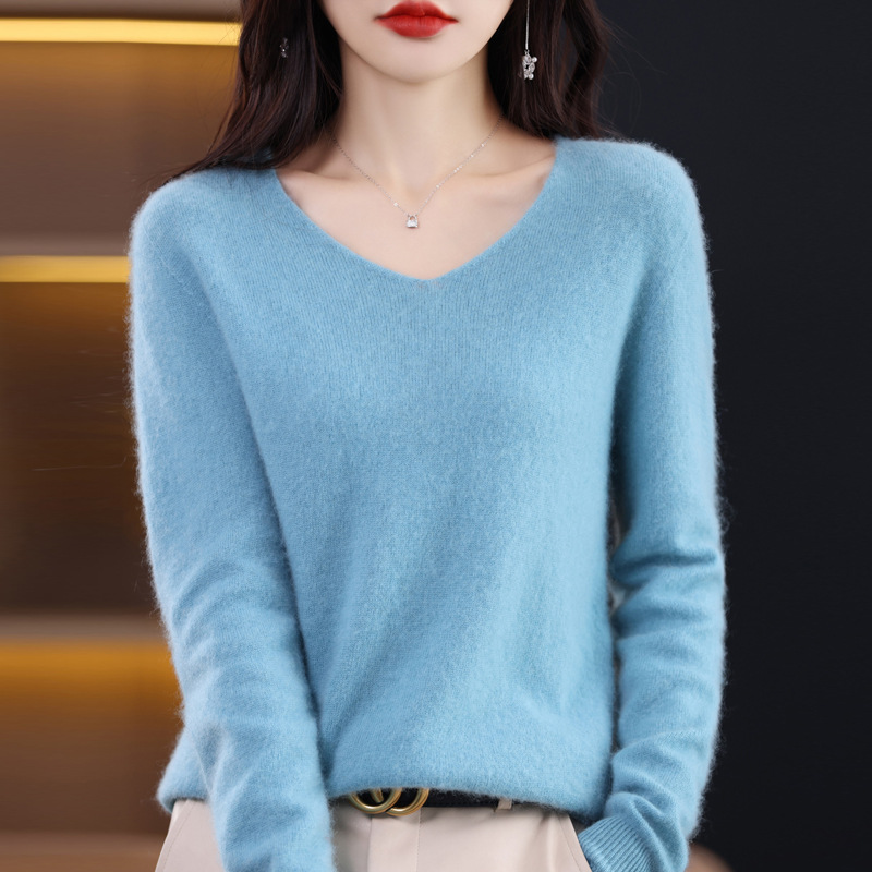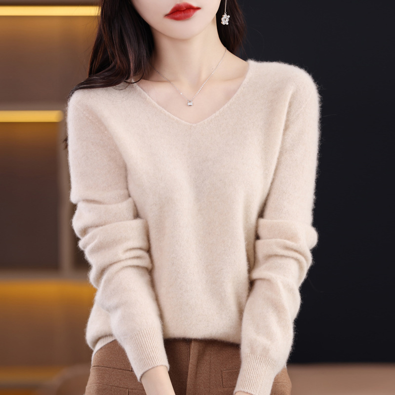 | nameOriginal | Autumn and winter New 100% wool first-line ready-to-wear V-neck long sleeve solid color niche knitted sweater classic bottoming top |