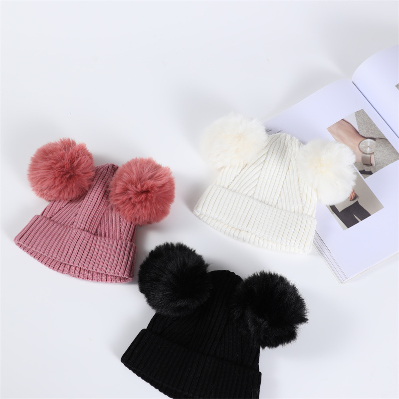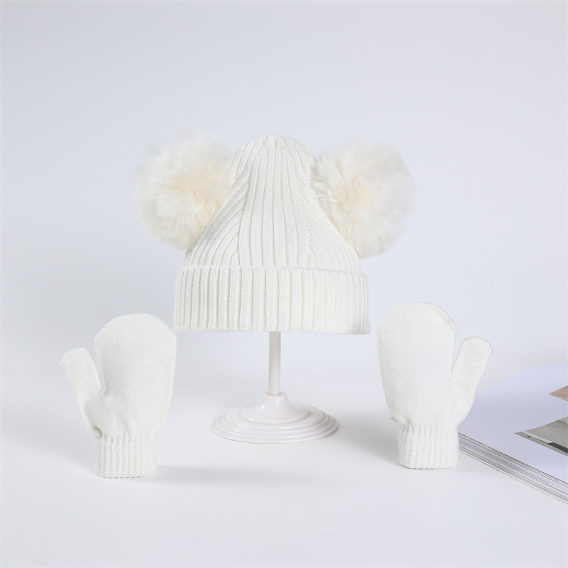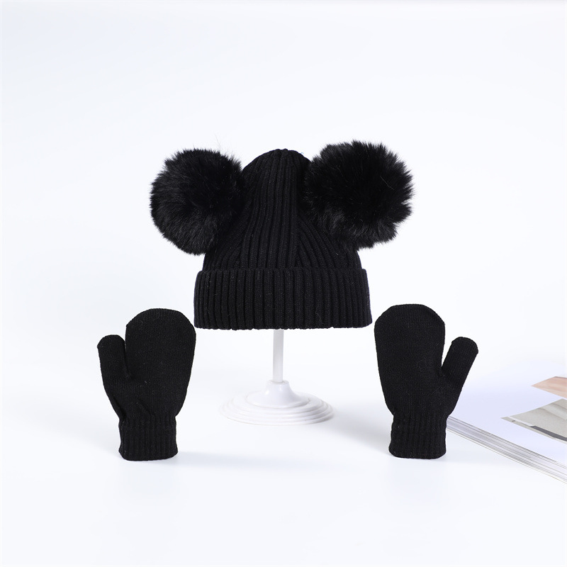 | nameOriginal | Autumn and winter New 2-piece Double Ball wool hat boys and girls cute cartoon warm hat gloves wholesale |