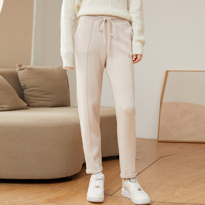 | nameOriginal | Autumn and Winter new cashmere pants women's high waist drawstring skinny pants loose slimming full cashmere thickened knitted casual pants |