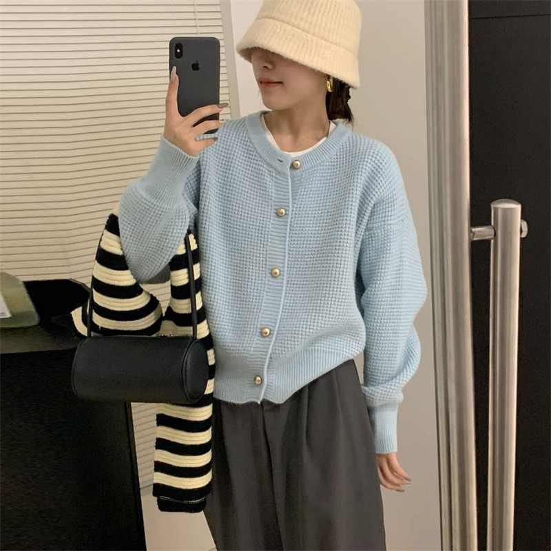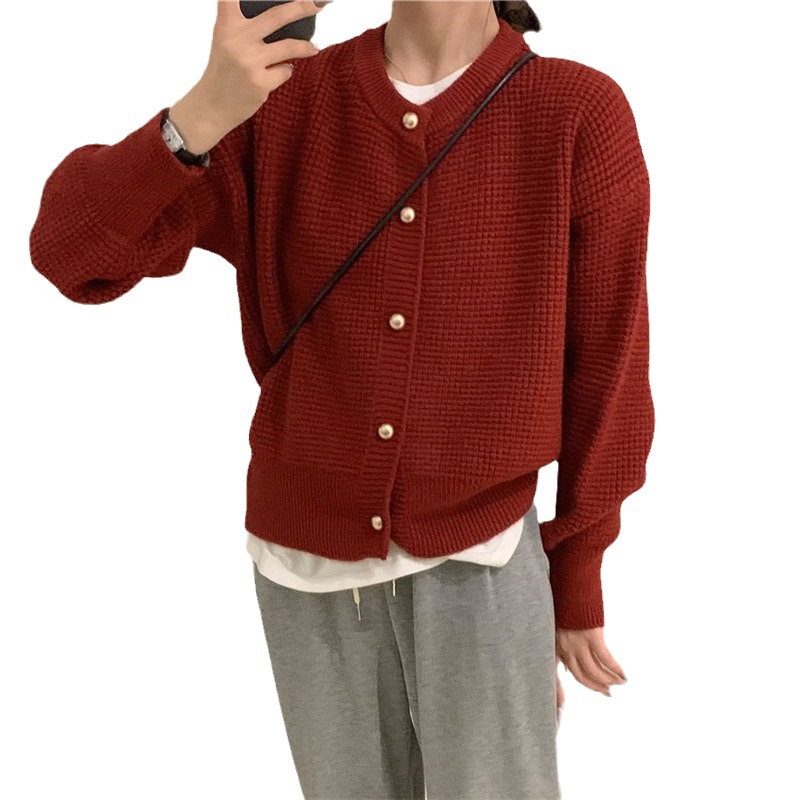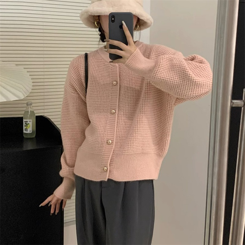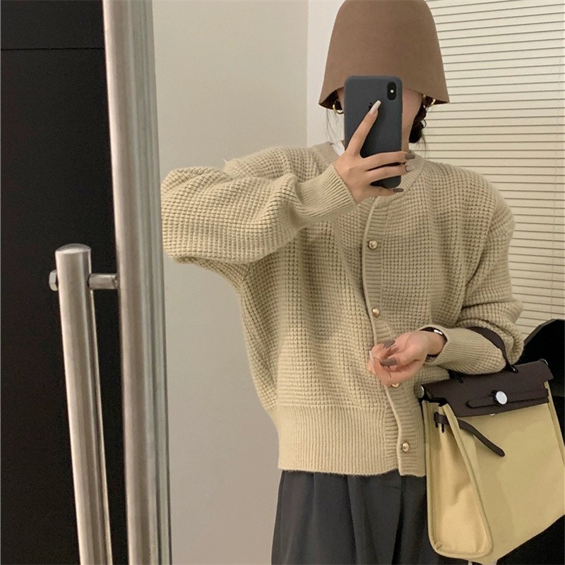 | nameOriginal | Autumn and Winter new casual style waffle knitted cardigan women's soft glutinous lazy style round neck loose sweater coat women |