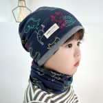 Autumn and Winter new children’s contrast color pile hat baby windproof scarf 2-piece set Boys and Girls cute knitted pullover hat