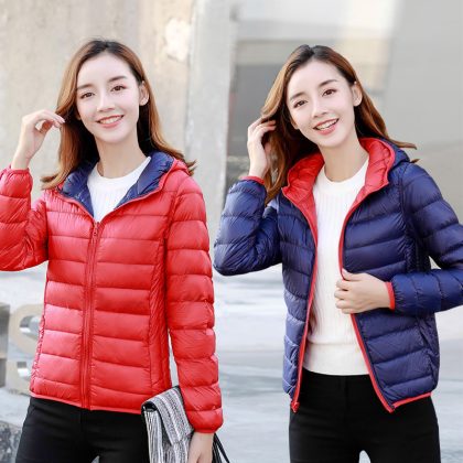 | nameOriginal | Autumn and Winter new double-sided down jacket women's lightweight short hooded jacket plus size double-sided thin winter fashion |