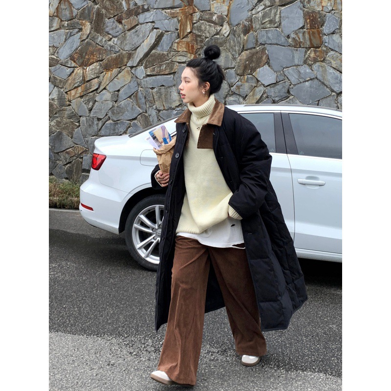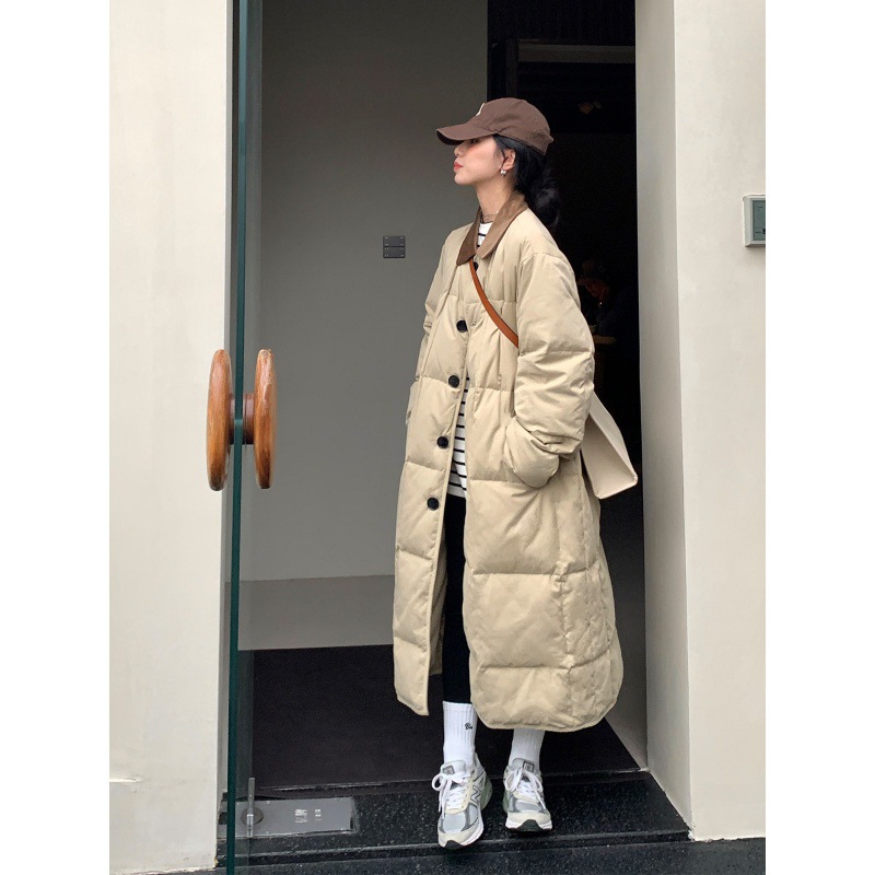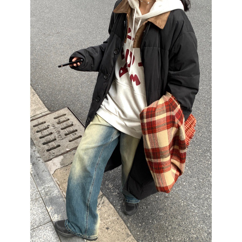 Autumn and Winter New Fake Two-piece Cotton-padded Jacket Women’s Long Single-breasted Rear Split Loose Profile Thickened Warm Coat Trendy