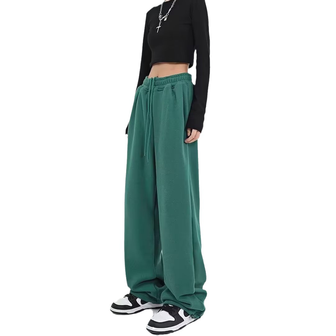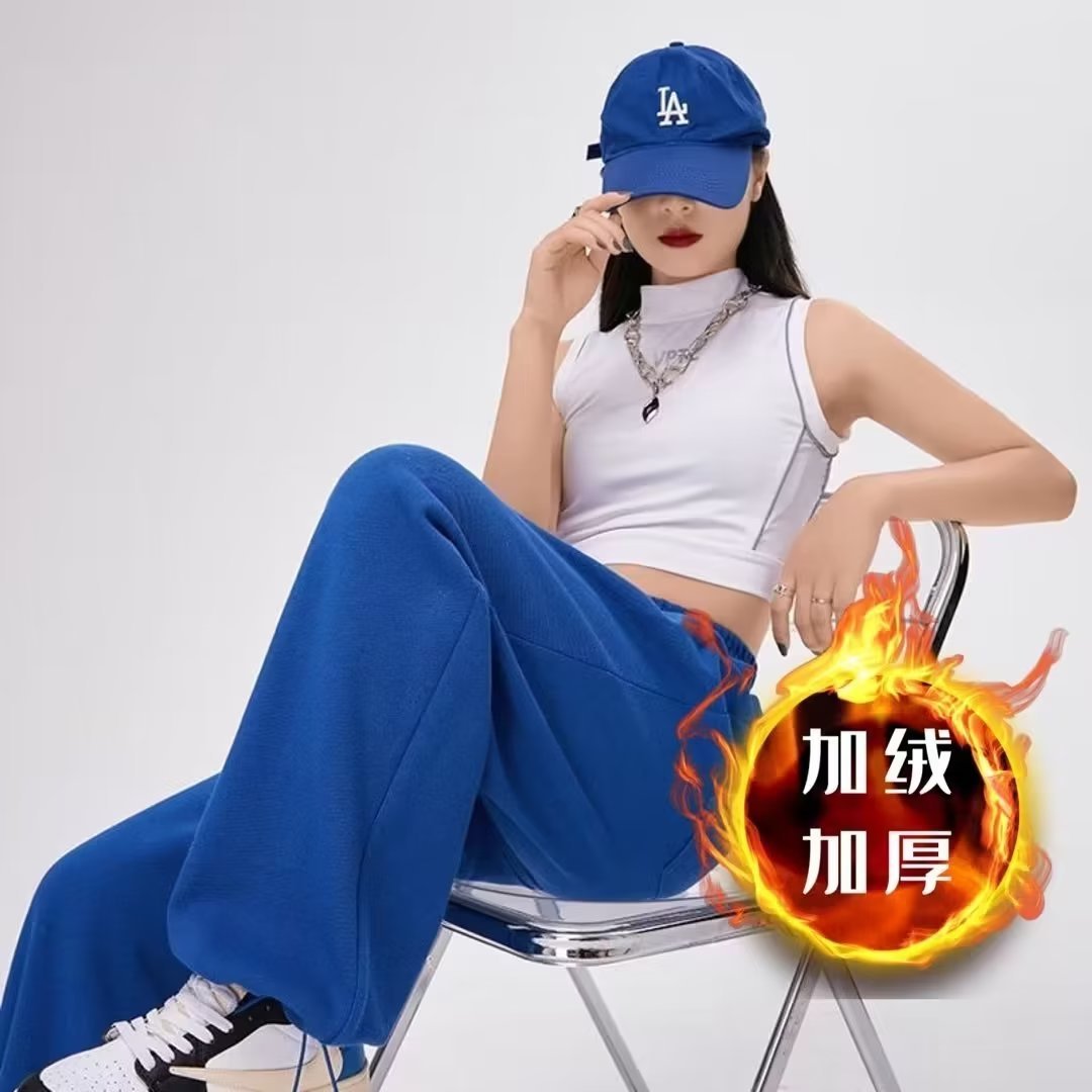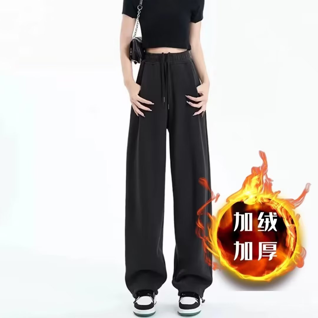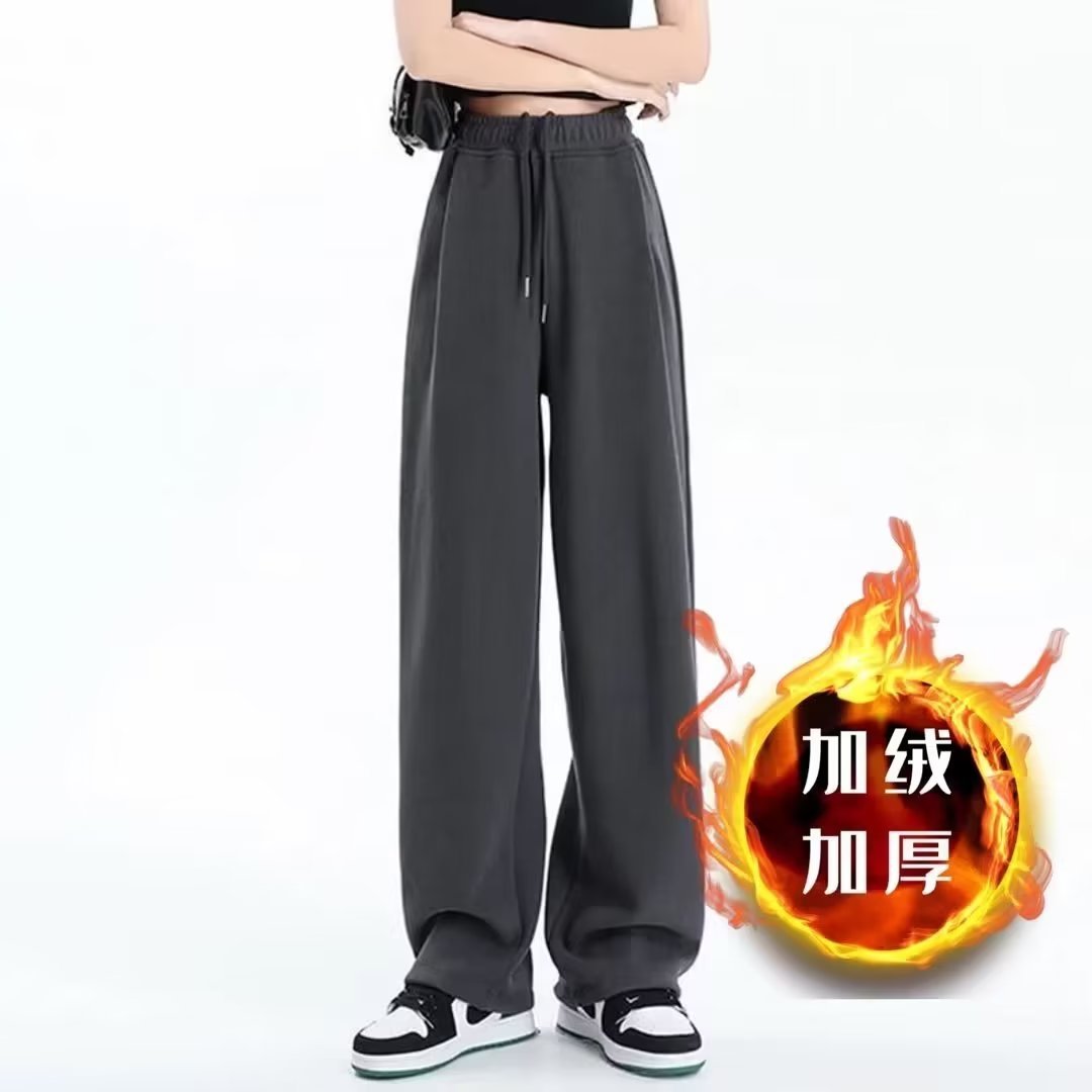 Autumn and Winter New fleece-lined Wide Leg Pants Straight Pants Loose Casual Sweatpants Trendy plus size chubby girl American Sports Pants for Women