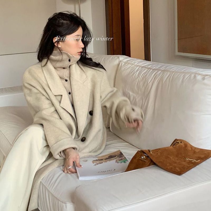Autumn and Winter New Foreign Style Double-sided Fleece Wool Coat Women’s Mid-length Hepburn Style Woolen Coat for Petite