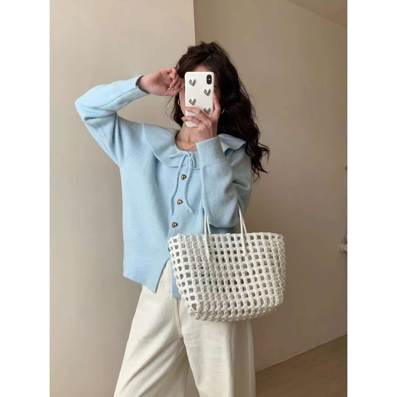 Autumn and Winter New French Style Ruffled Doll Collar Lace-up Sweater Women’s Korean Style Sweet Age-reducing Knitted Cardigan Top for Women