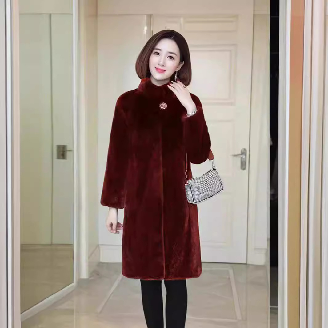 Autumn and Winter New Fur Coat Women's Mid-length Imitation Mink Collar Slimming Noble Women's Mink Velvet Korean Coat