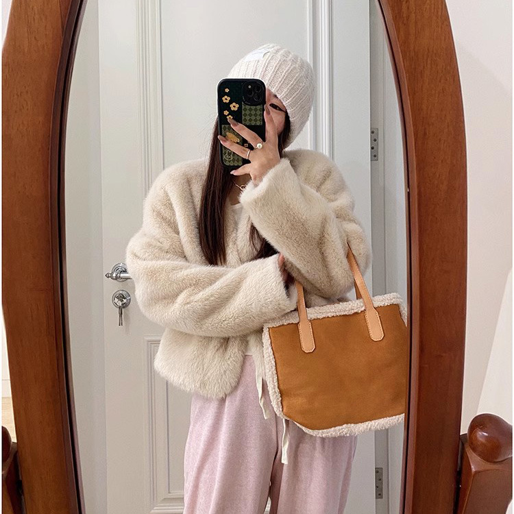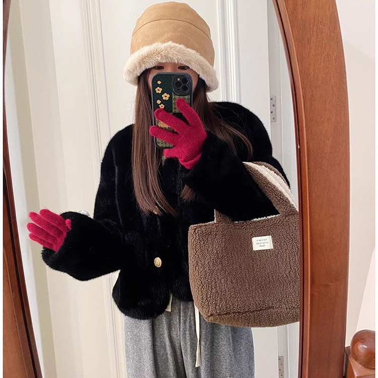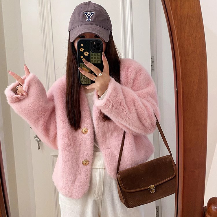 Autumn and Winter New Gold Mink Cashmere Coat Fur One-piece Short Imitation Mink Cashmere Environmental Protection Women’s Fur Coat for Autumn and Winter