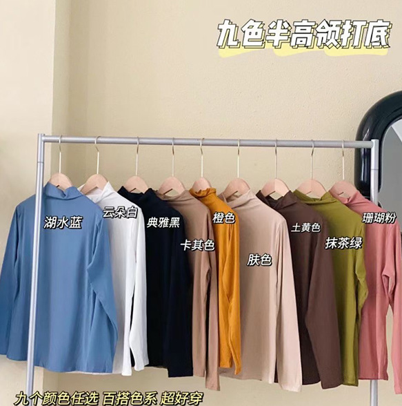 | nameOriginal | Autumn and winter New half turtleneck slim bottoming shirt Women's solid color inner wear slimming skin-friendly nude feeling long sleeve T-shirt mask clothing |
