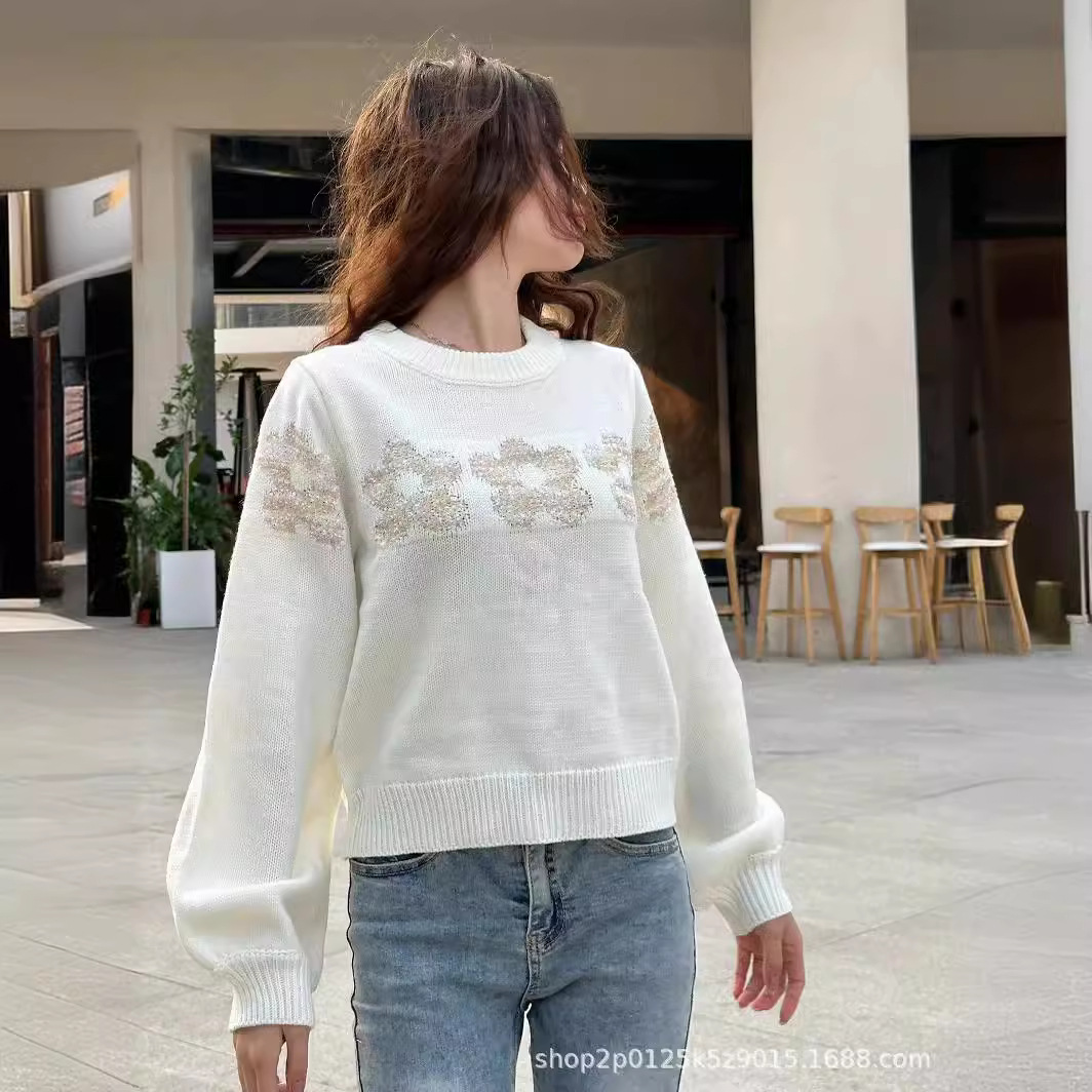 Autumn and Winter New High-end Western Style Lazy Style Crewneck Pullover Long-sleeved Knitted Sweater for Women