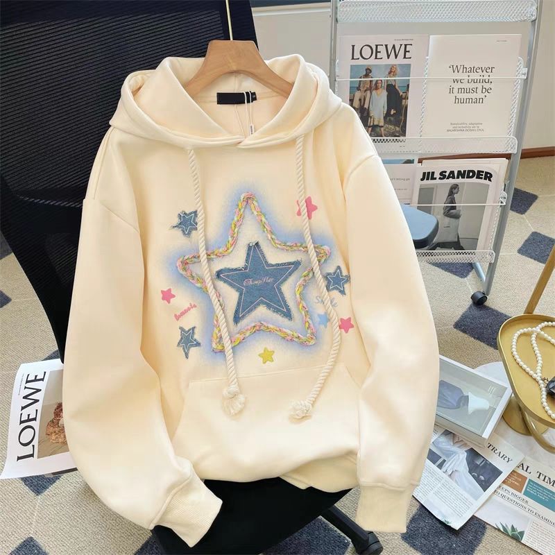 | nameOriginal | Autumn and Winter New Hooded Sweat Trendy Baby's Stars Printed Girls Middle and Big Children's Apricot Style All-match Outer Wear Top |