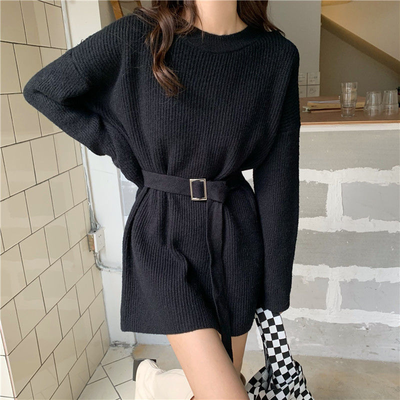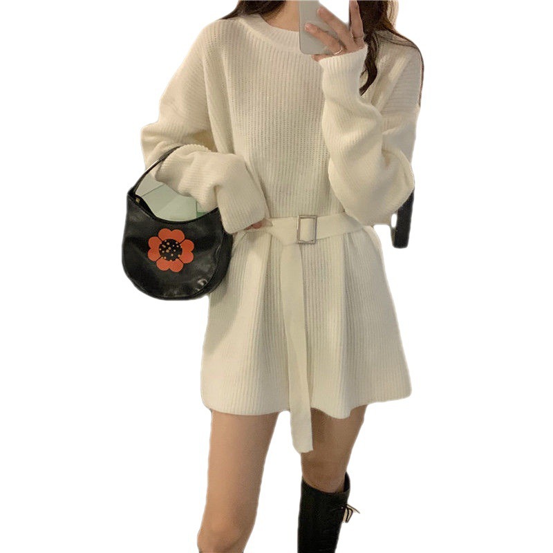 | nameOriginal | Autumn and Winter New Japanese Style Lazy Style Mid-length Outer Wear Sweater Women's Round Neck Loose Belt Sweater Women's Coat |