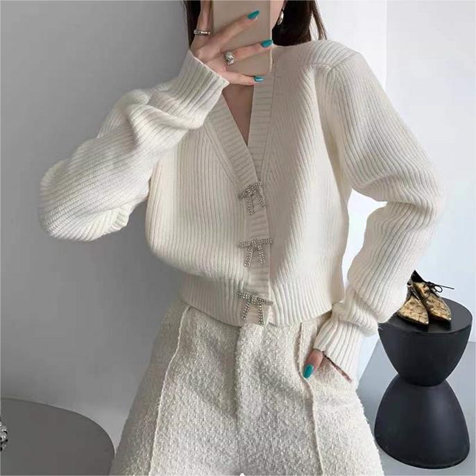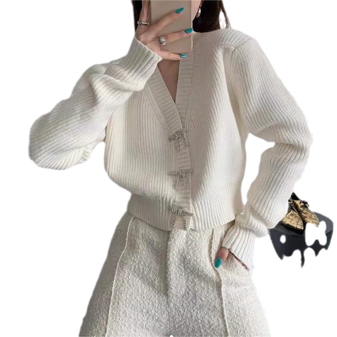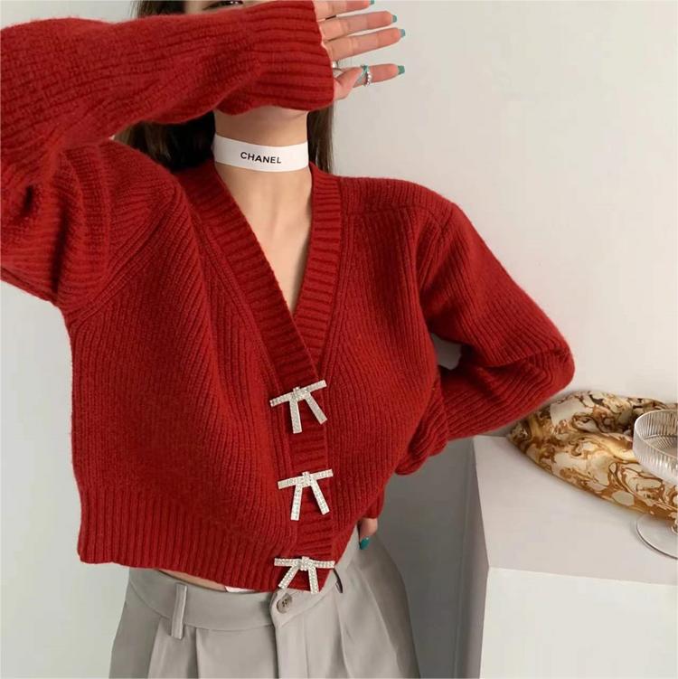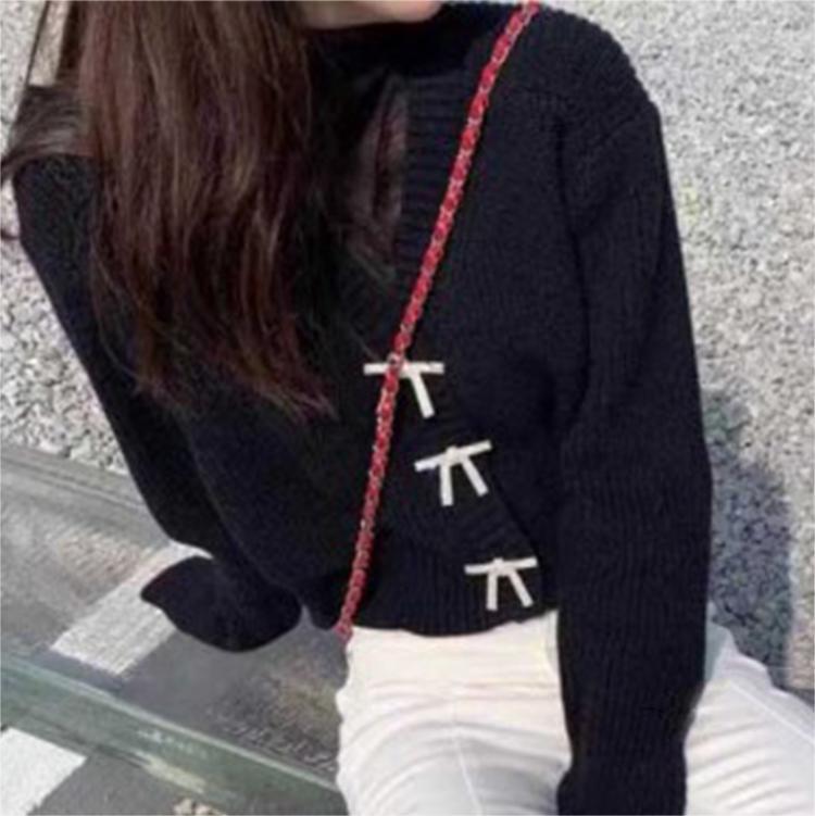 | nameOriginal | Autumn and Winter New Knitted Cardigan Bow V-Neck Design Niche Solid Color Short Sweater Coat Women |