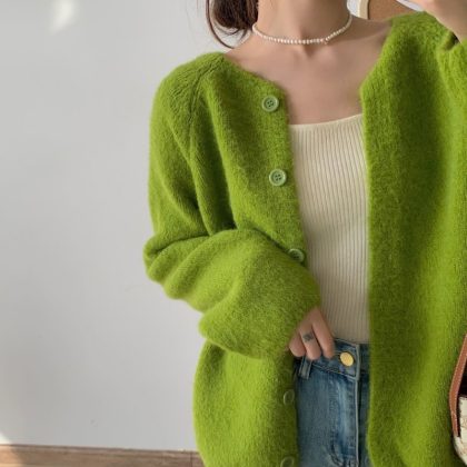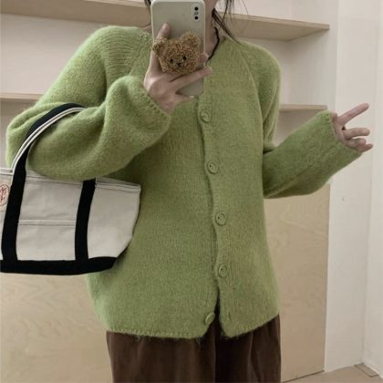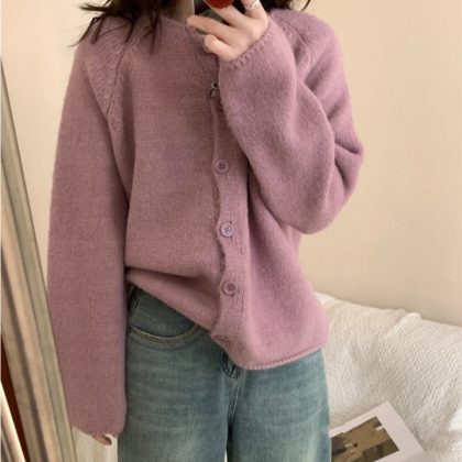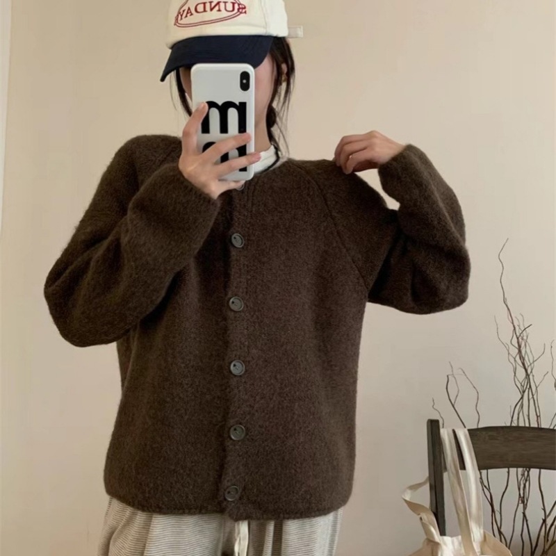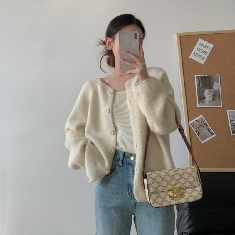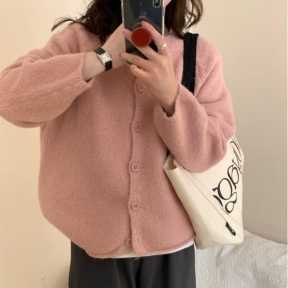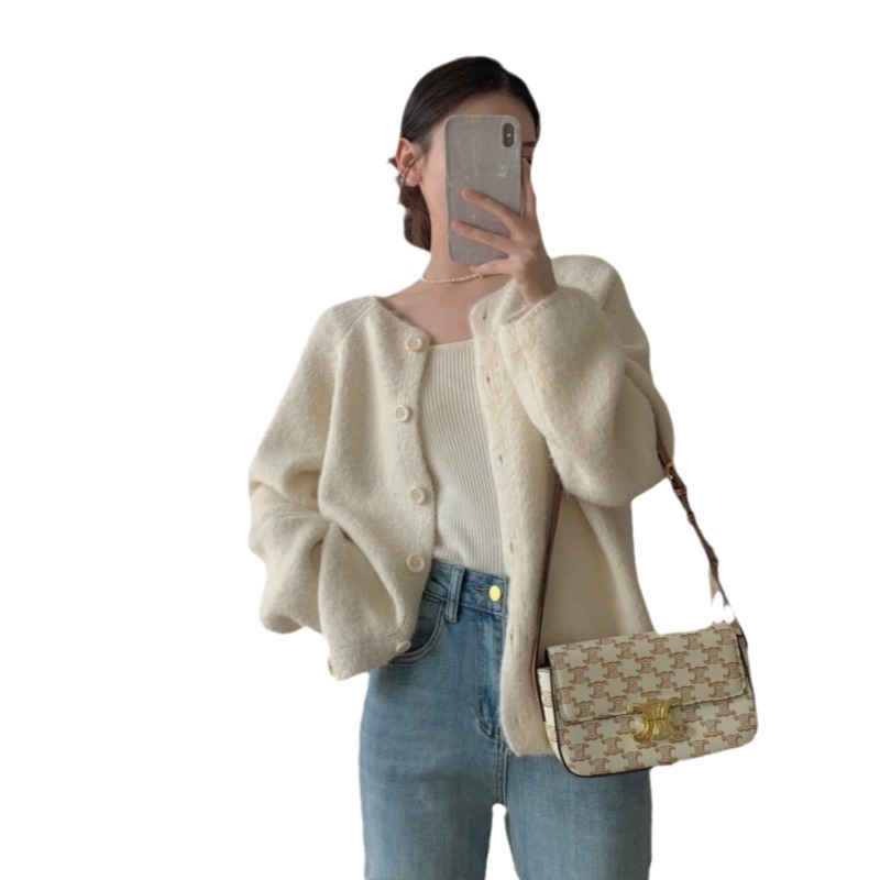| nameOriginal | Autumn and Winter New Korean Style Lazy Style Round Neck Soft Waxy Sweater Jacket Gentle Style Loose Knitted Women's Cardigan |