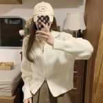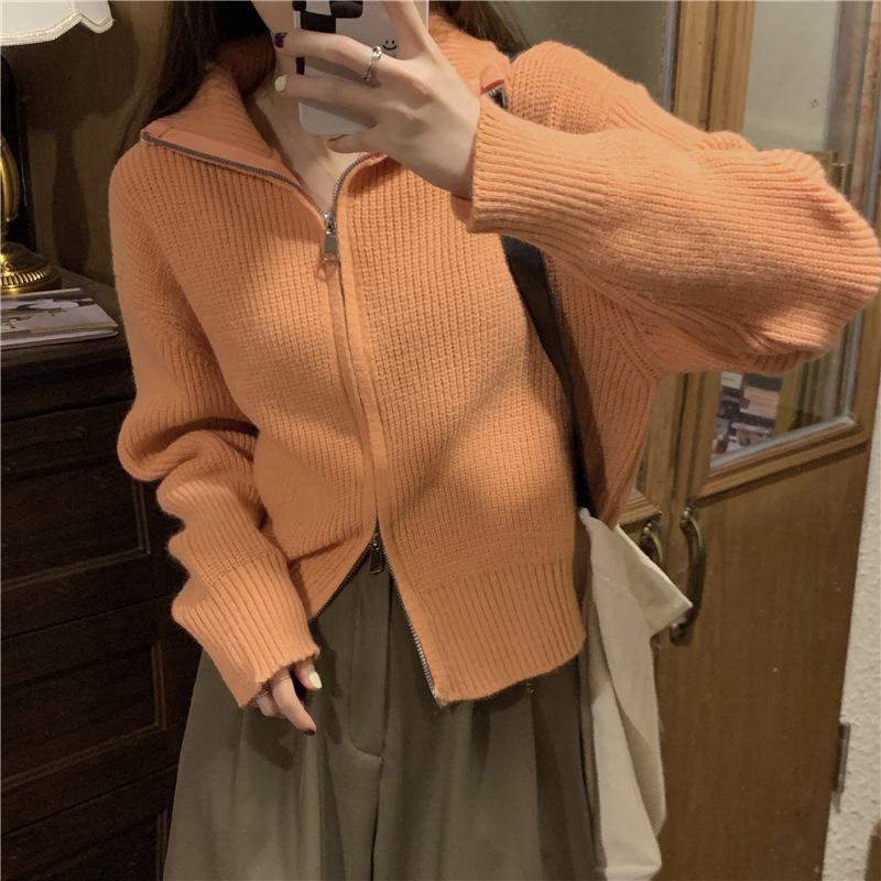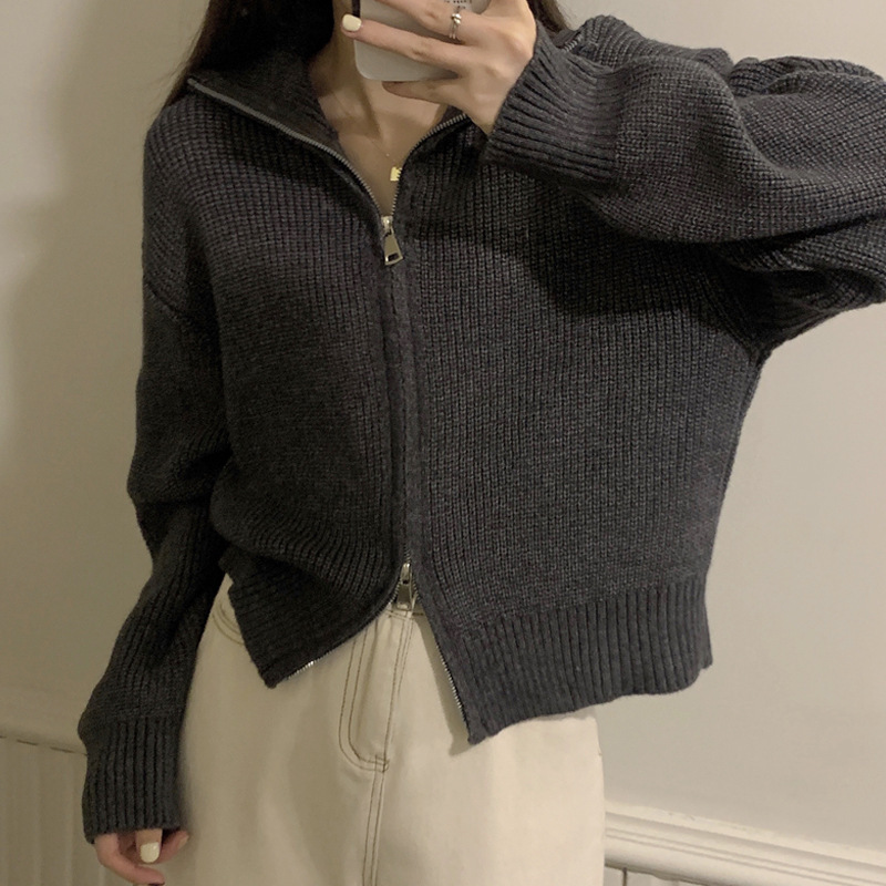 Autumn and Winter new Korean style loose lazy solid color knitted cardigan women’s design sense niche double-headed zipper sweater coat