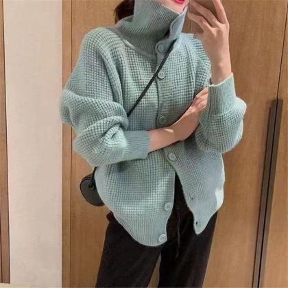 | nameOriginal | Autumn and Winter New Long Sleeve Lazy Style Turtleneck Sweater Fairy Coat Loose Button Casual Knitted Cardigan Women's Clothing |