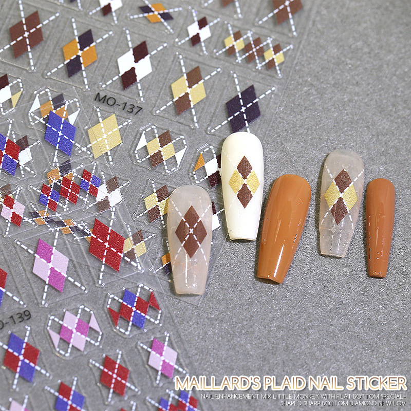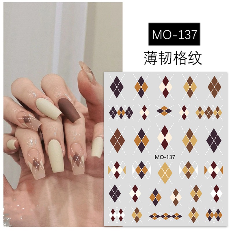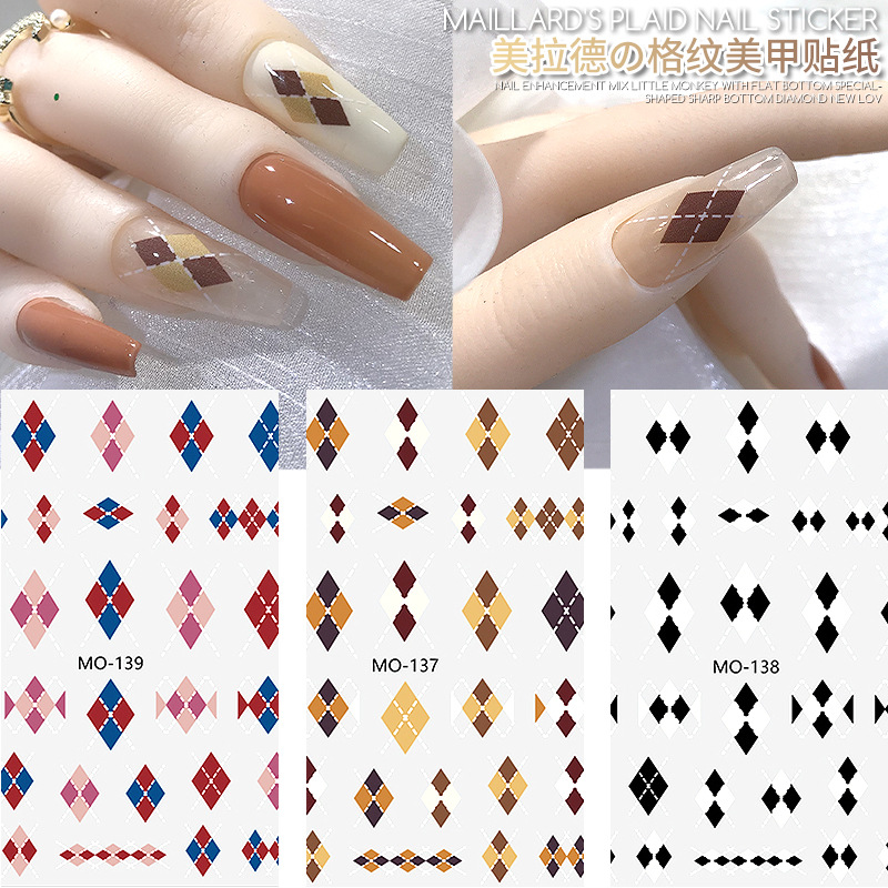 | nameOriginal | Autumn and Winter new Maillard Diamond Plaid nail stickers Brown black and white grid red popular thin tough nail stickers |