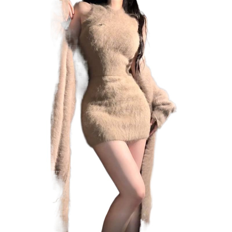 Autumn and winter new pure sweet hot girl soft waxy mink velvet cardigan jacket vest hip skirt three-piece women’s clothing